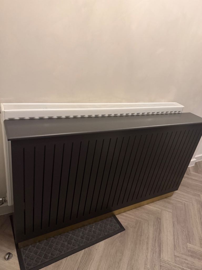Large size Laura James radiator cover in charcoal black. It has a beautiful gold trim at the bottom. Exceptional quality. Brand new and unused. Ordered incorrect size. Already fully assembled, ready to be collected.