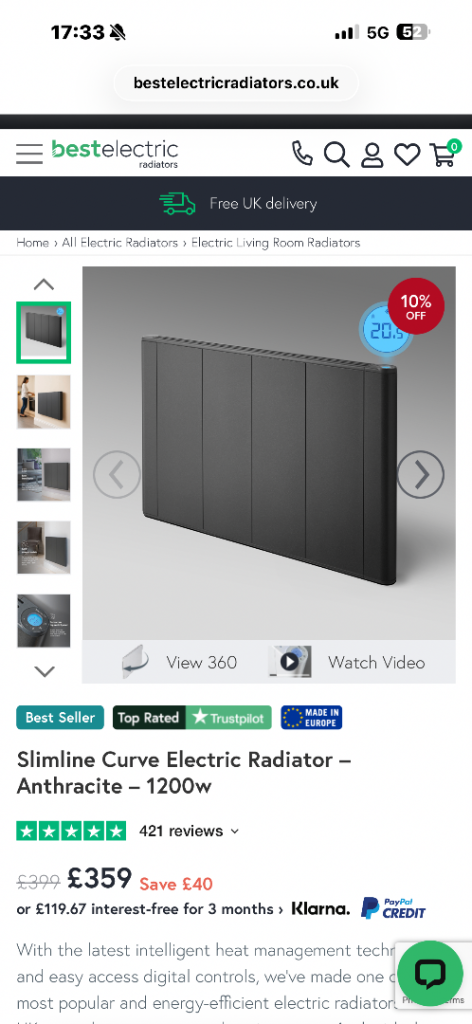 2 x 2000w Slimline Curve - this can cover a room around 20 square metre . Each for £400