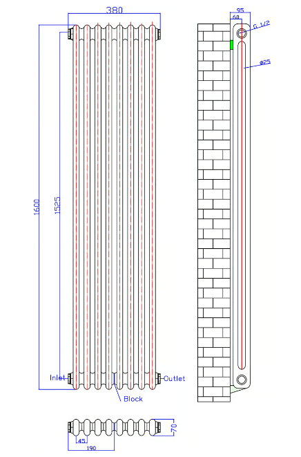 Vertical Colosseum Double Bar Column Radiator White - 1600 x 380mm **BRAND NEW/UNOPENED**