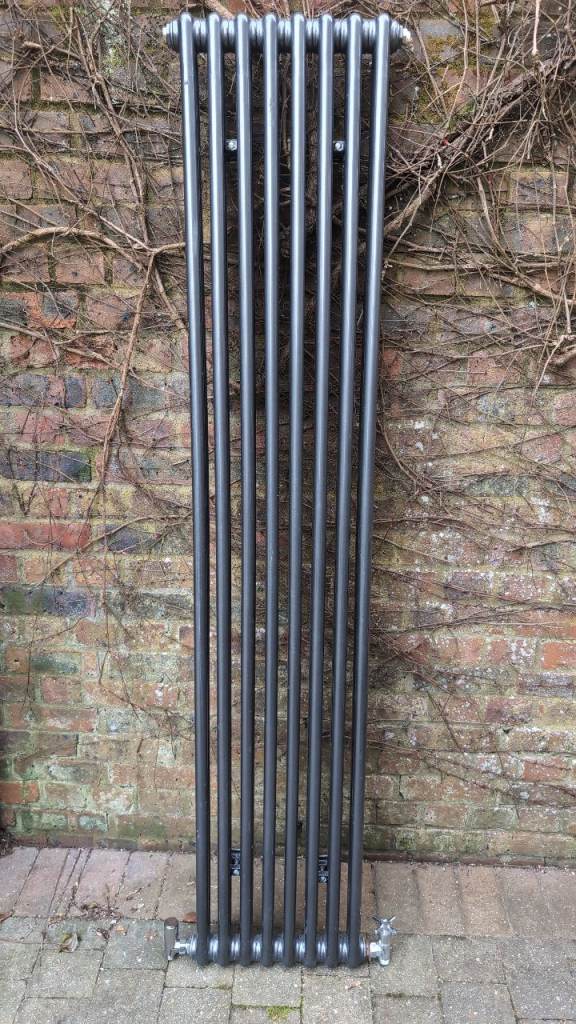 Aurora vertical radiators in striking anthracite. Contemporary tubular design fits perfectly into any modern home. Tall radiators with high quality power-coated steel construction.