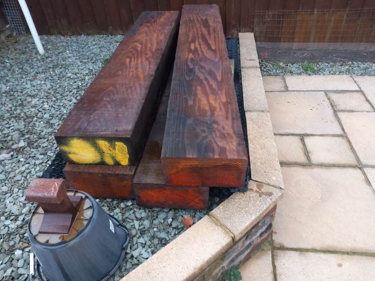 4 red wood railway sleepers no holes size 1 15cmx30cmx167cm