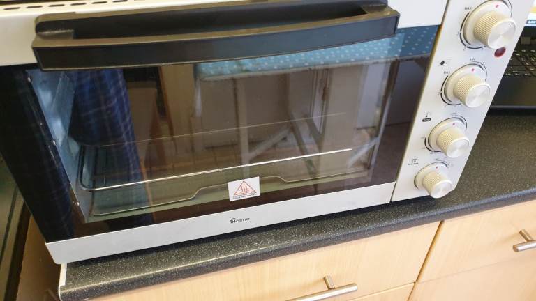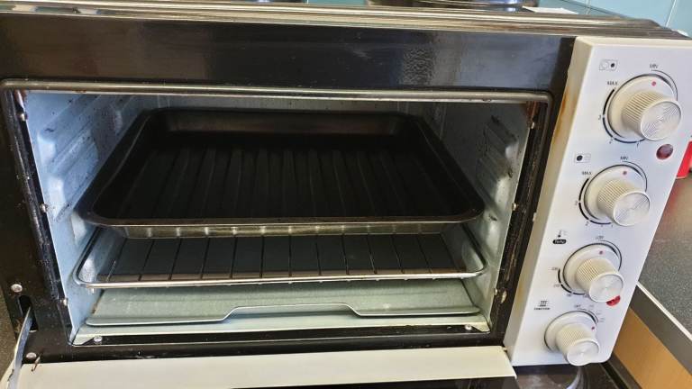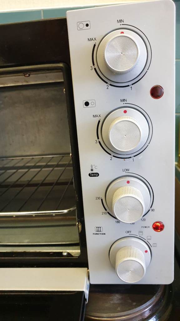 Using the Oven Note: the oven and the hotplate can all work at the same time. Insert the mains plug into a suitable 13Amp mains socket. Choose your required cooking mode with the function selector control (6). Place the food on grill rack (4) or baking tray (5) and close the oven door. Do not use paper or plastic containers.