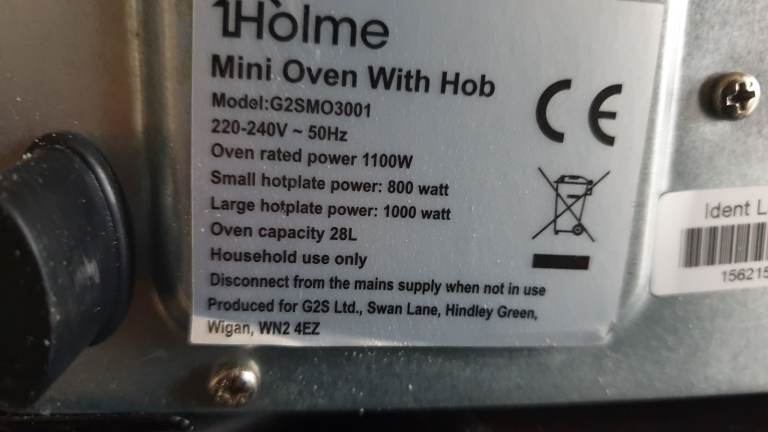 Mini Oven With Hobs User manual Model number: G2SMO3001 Please read these instructions carefully and keep them for future reference