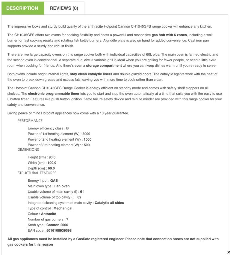 Hotpoint Cannon Range Cooker