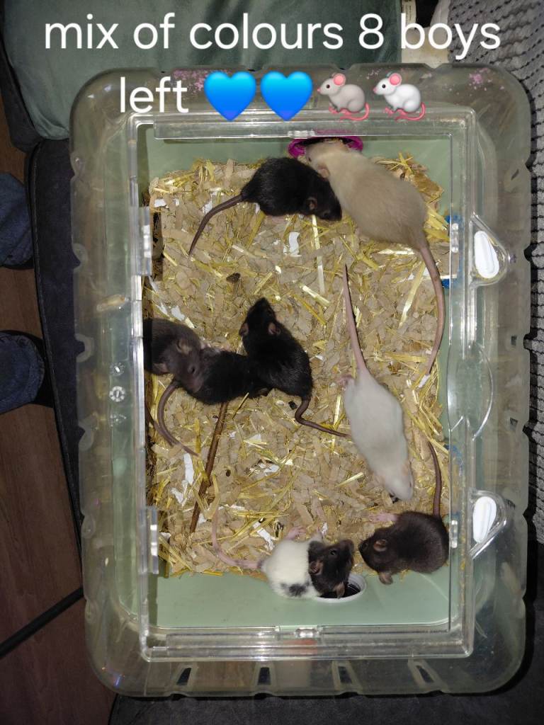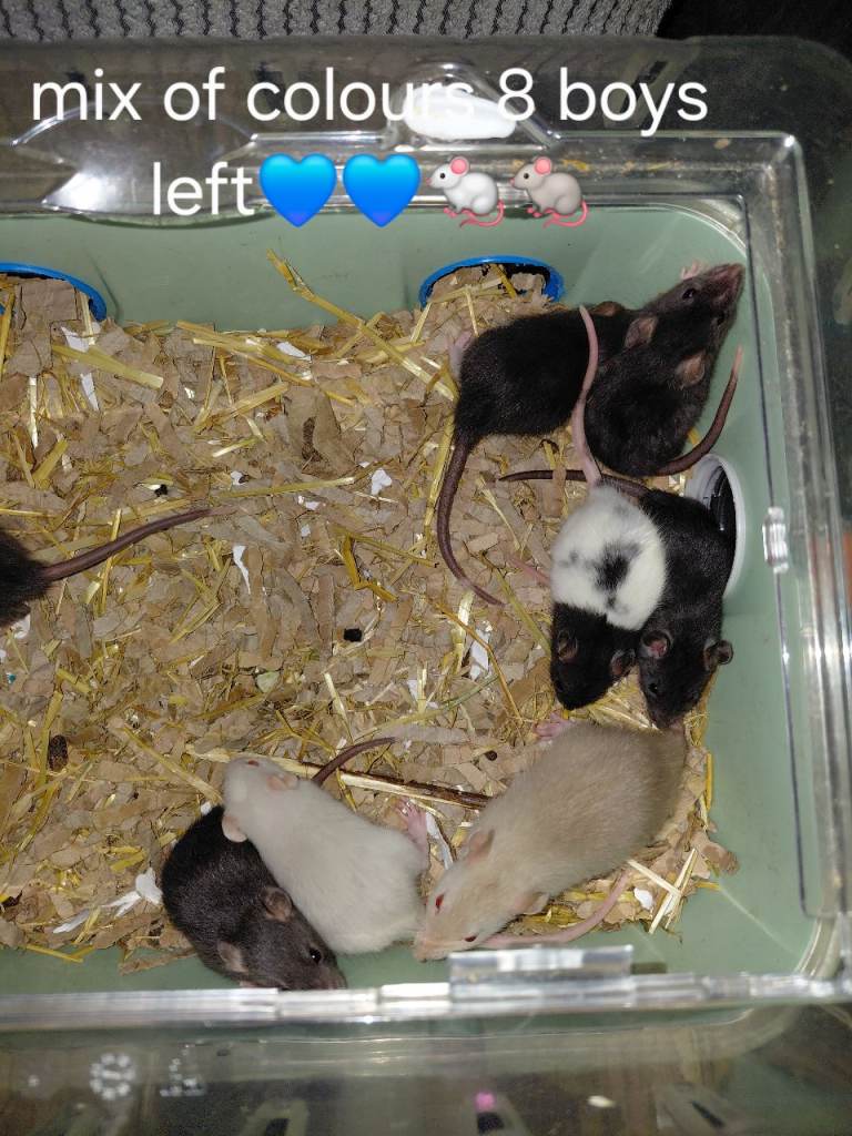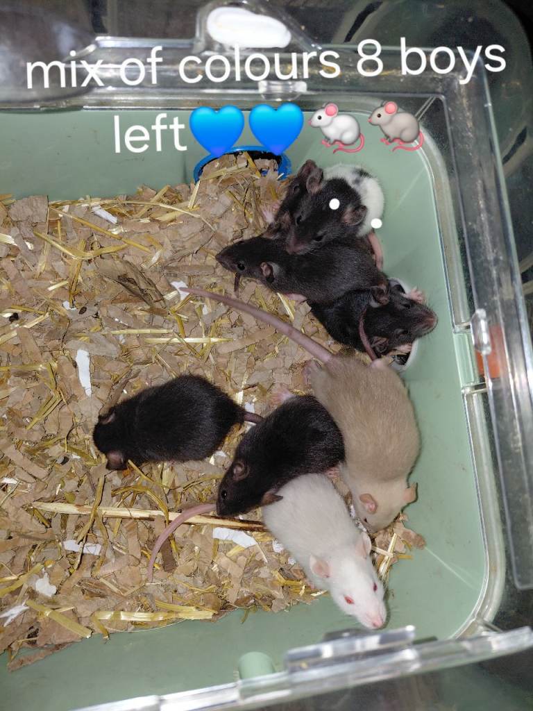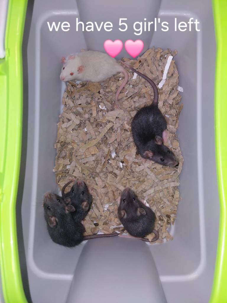 5 girls rats left and 8 boys Rats topeard and all different colours