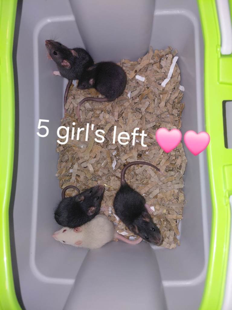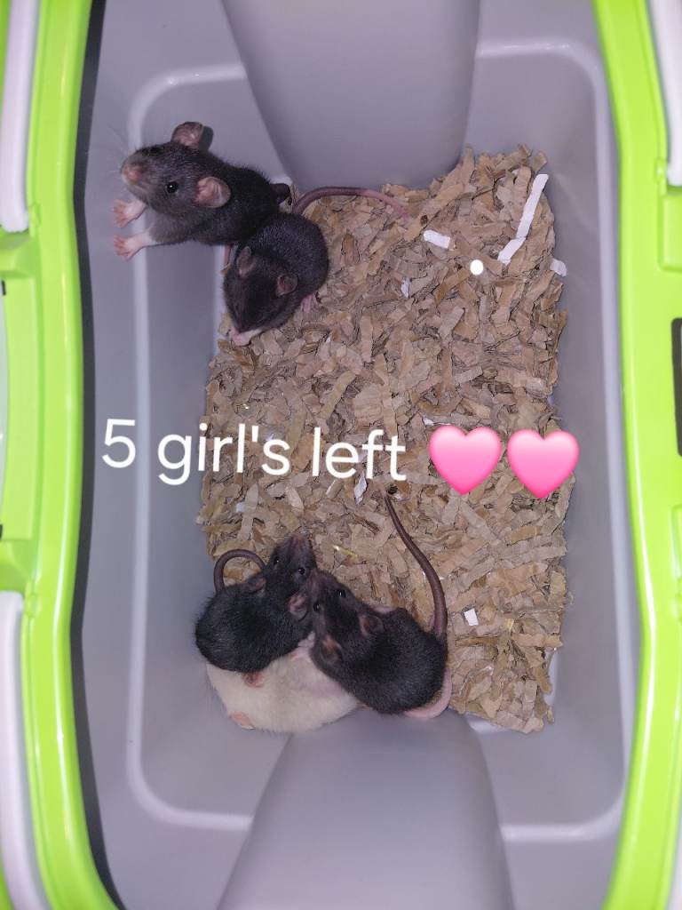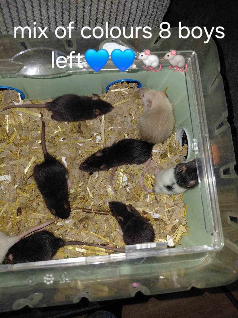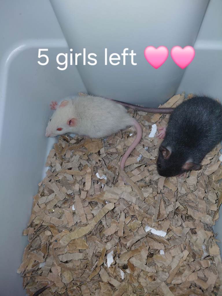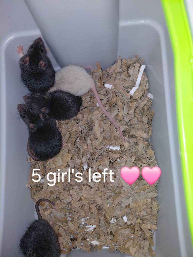 5 girls rats left and 8 boys Rats topeard and all different colours