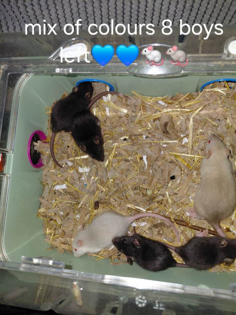 Please feel free to message and will answer any questions. We have mix of colours topeard feel free to message and ask as many questions? We are not Front door breeder you are more then welcome to come and choose your rattys and see the mother rats all our rats are used to children and other animals and we handle all our rats and all ones we sell all the time