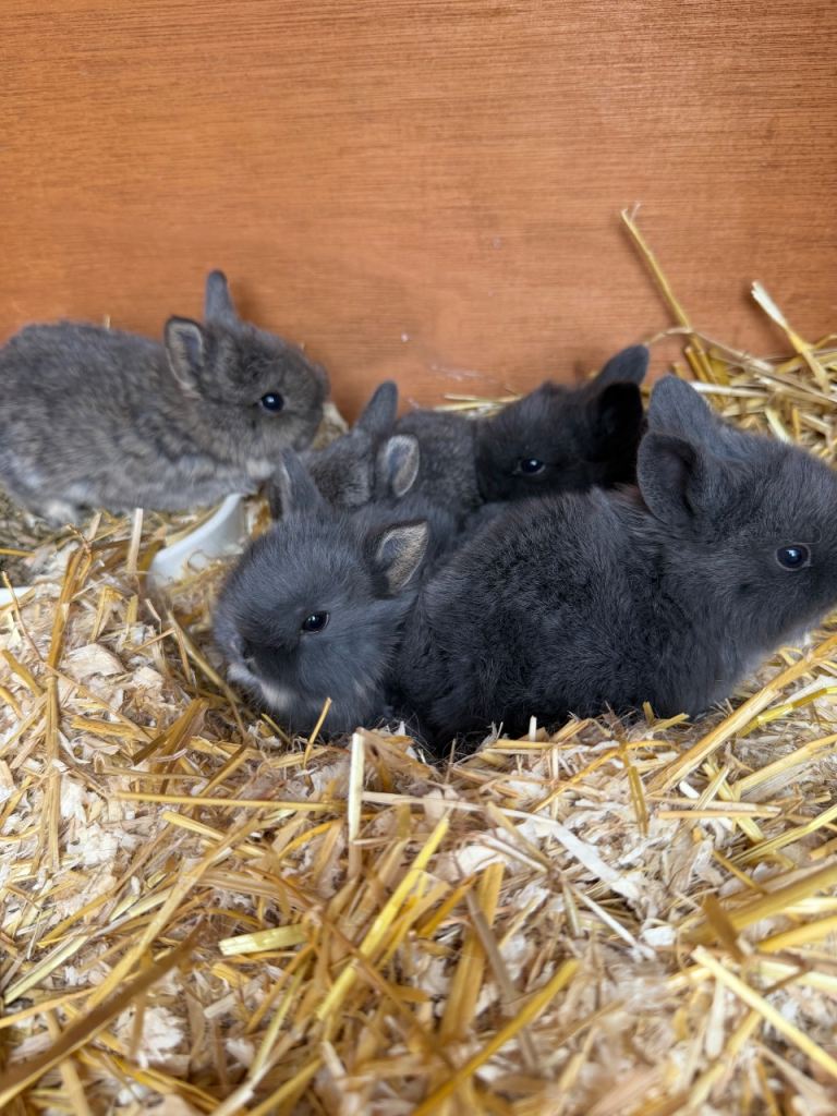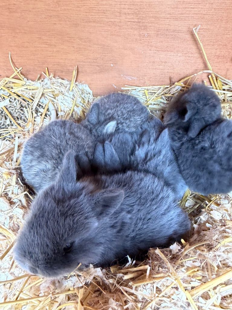6 pure grey baby dwarf rabbits mum and dad can both be seen born on the 17th of February all are eating and drinking the have been well handled since they were born by adults and children not to sure of the sex of them as only 5 weeks old