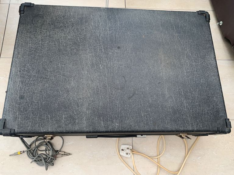 Mounted in good strong wooden carry case with external connecting cables, lift-off detachable lid