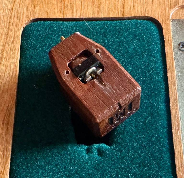 The cartridge has seen approximately 300 hours of use and is in excellent condition, having been carefully installed, used, and maintained in a smoke- and pet-free environment. Always used on a properly aligned tonearm with a calibrated tracking force. The cantilever is straight and perfectly aligned—parallel to the cartridge body, confirming its great shape and readiness for installation.