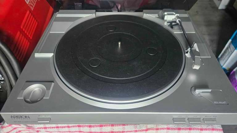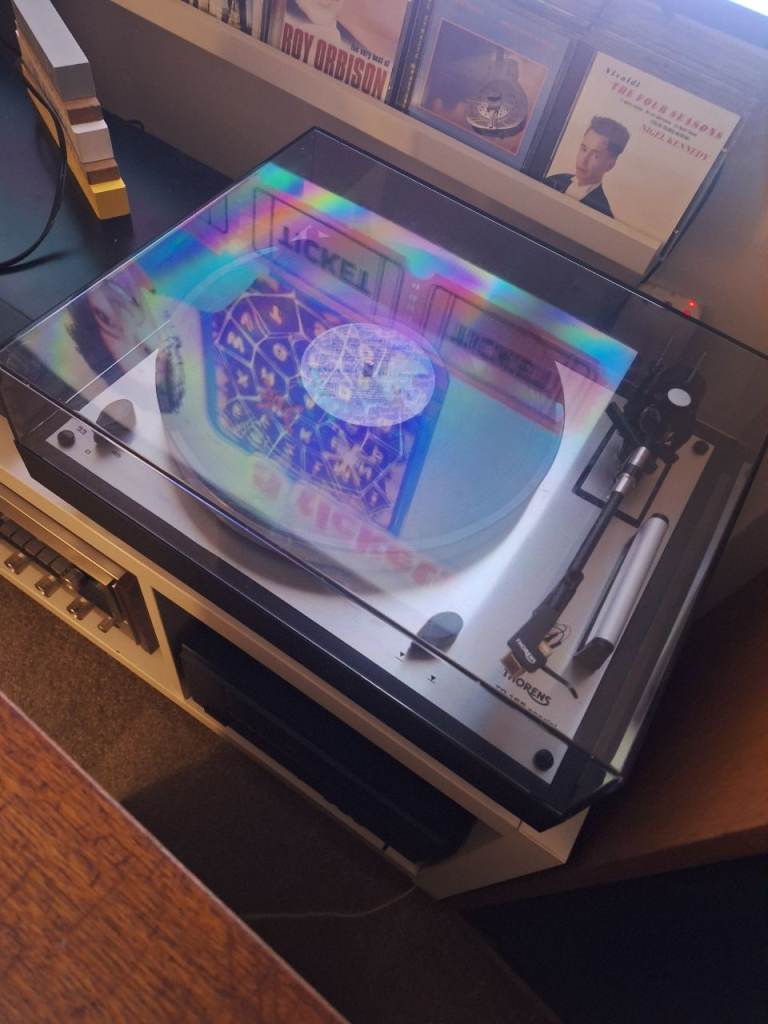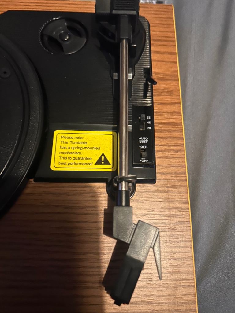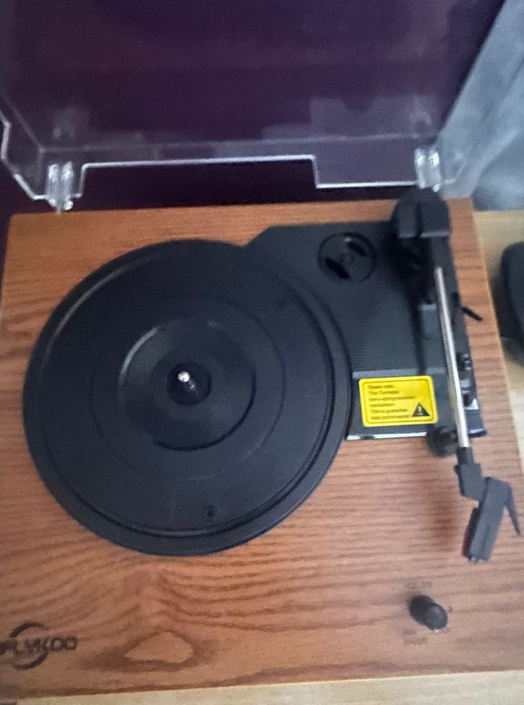 Great little record player with built in speakers, plays 7,10 & 12 inch records, have 5 albums with it. The record player is mint condition however their are scratches/scuffs to Perspex lid but this doesn’t affect player in anyway.