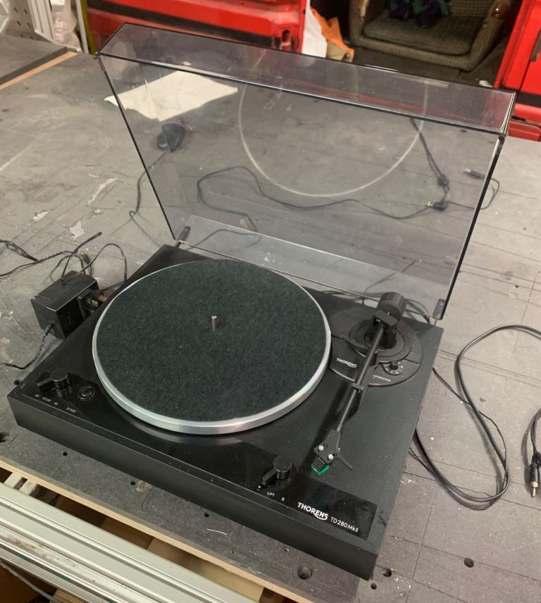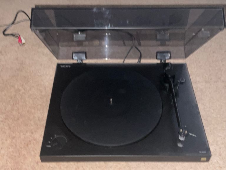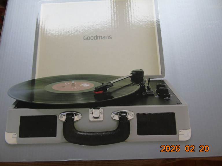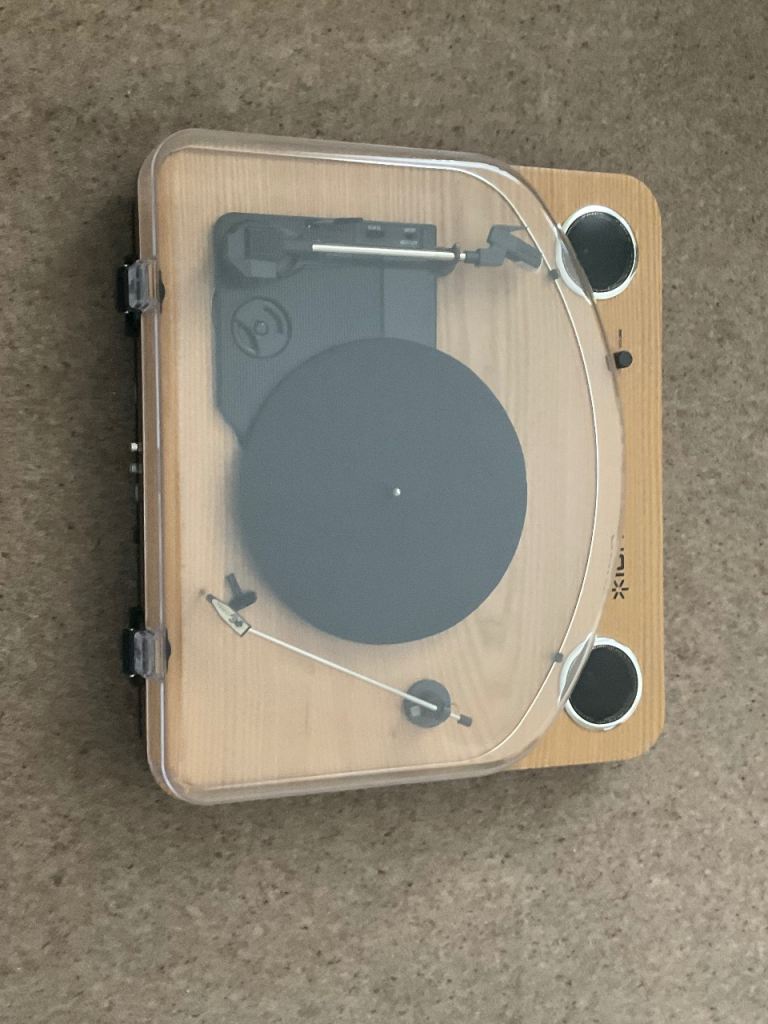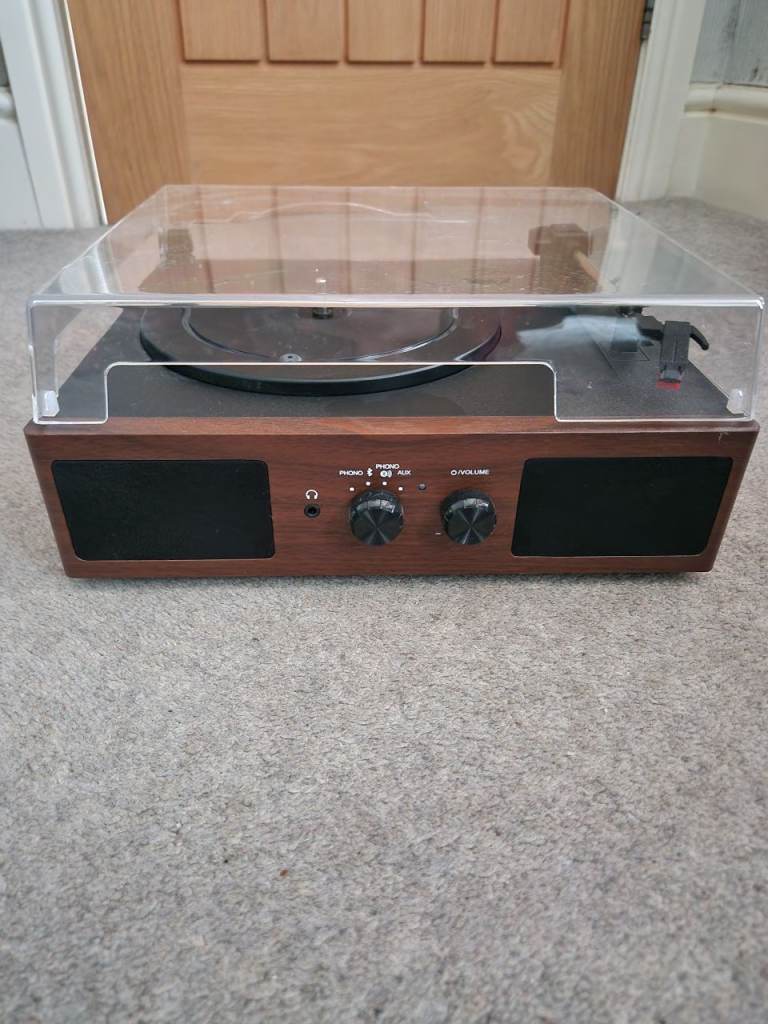 Turntable bought for nostalgia, 45 rpm is not working correctly but 33 rpm is fine. Speakers are inbuilt if better sound required aux jack input at rear. This also enables recording.