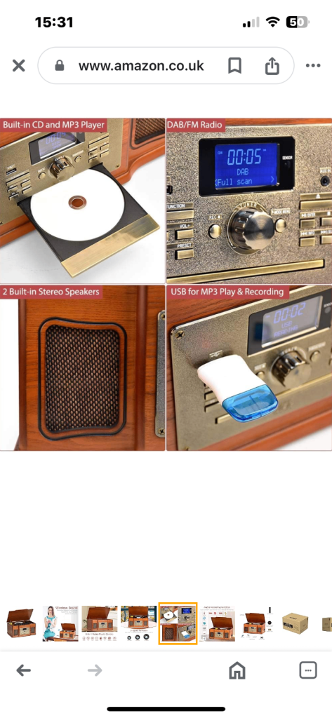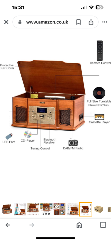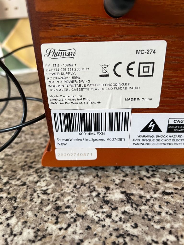 Shuman record player, dab radio, cassette player,cd player ,Bluetooth in very good working condition it does have a tiny mark on the top back by the hinge see photo!your welcome to view to test if required collection from Watford wd25 area ( please note the last 4 photos are library photos for information)