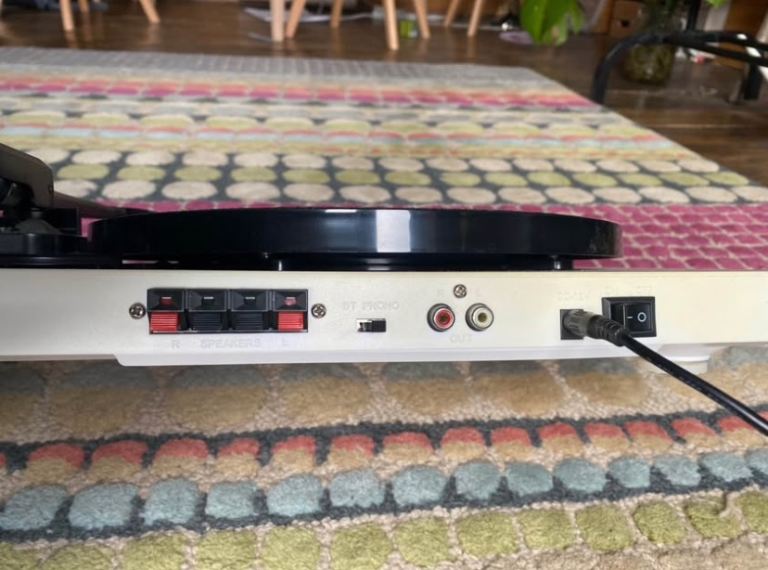 Used but fully working, selling as I got an upgraded system. Has bluetooth function. Simple spring clip system for speaker connection. Not aux. Slight sun fading at the back where it had been on my windowsill. Does not come with speakers.