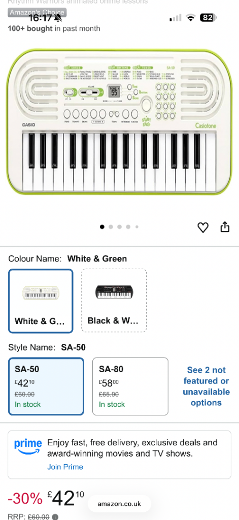 Posting for 2+ yearsCasio Casiotone SA-50 32 Mini-Keys Keyboard