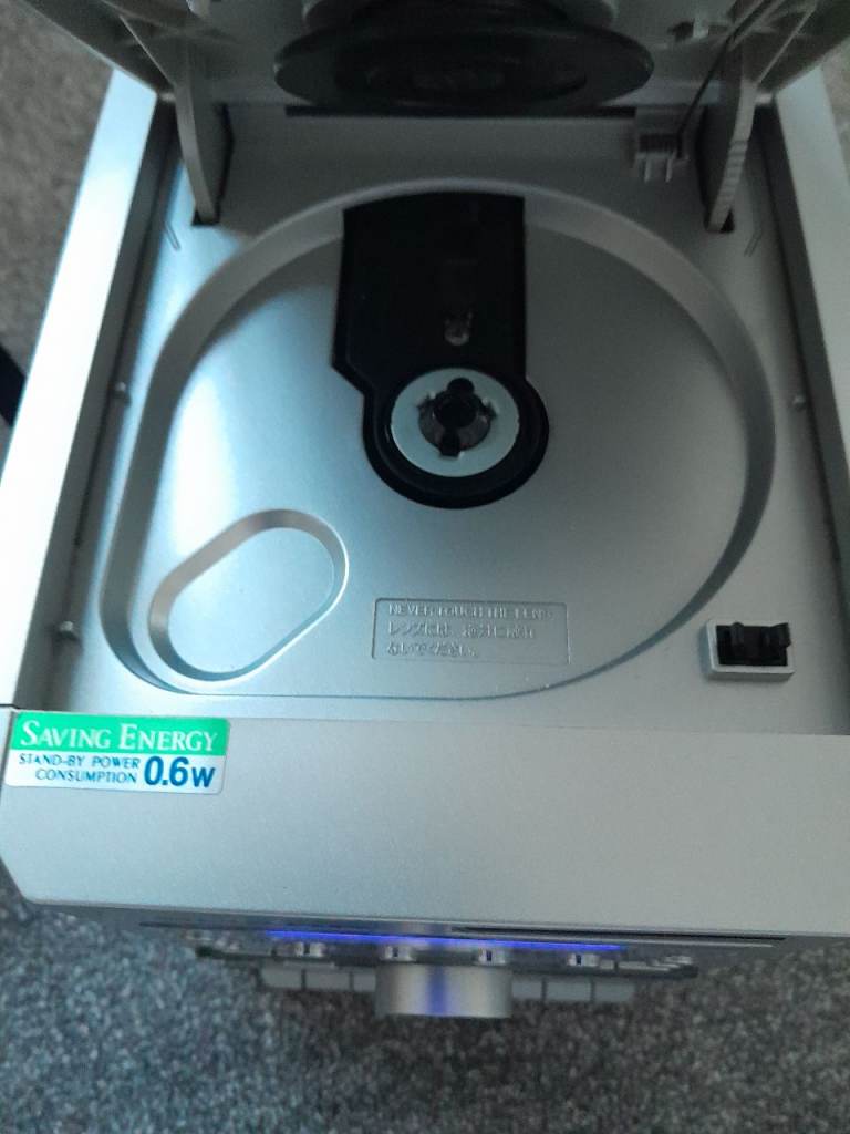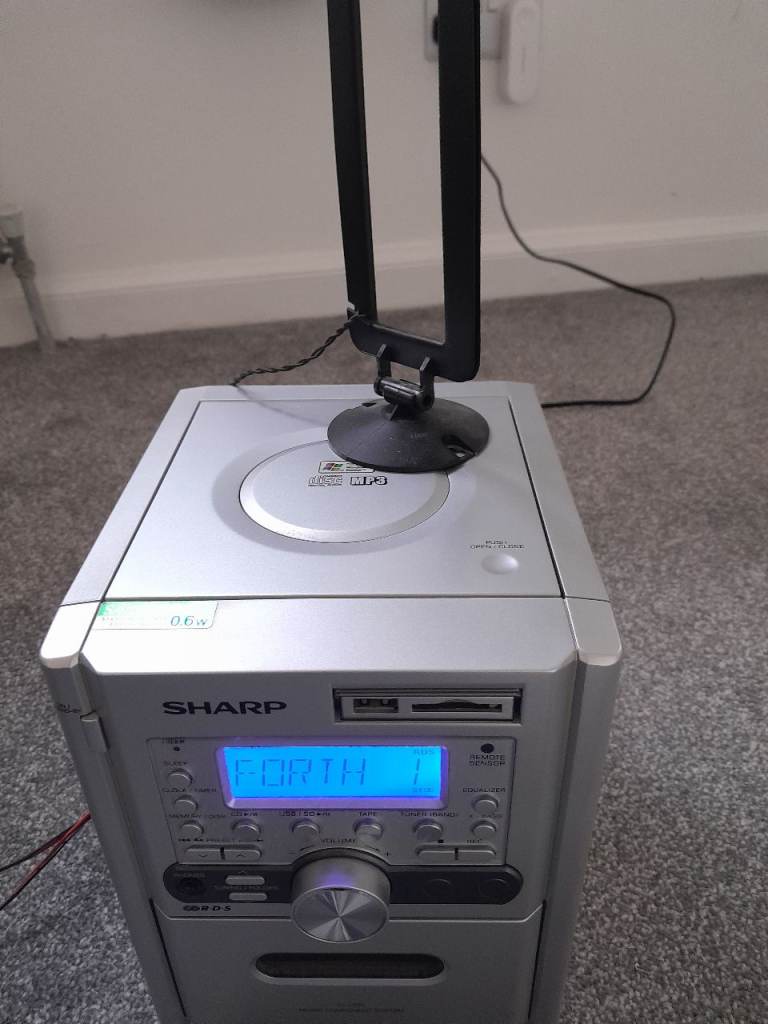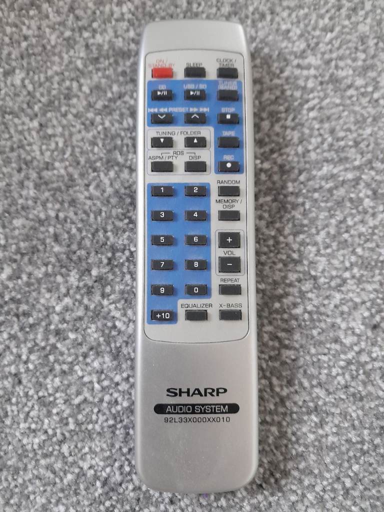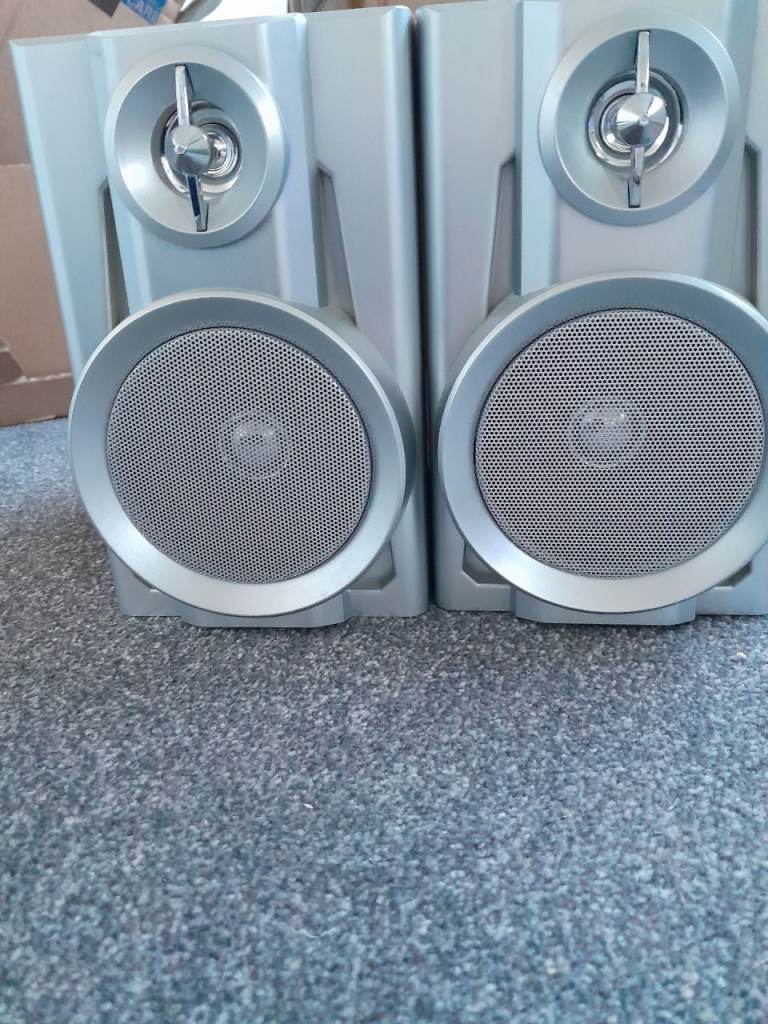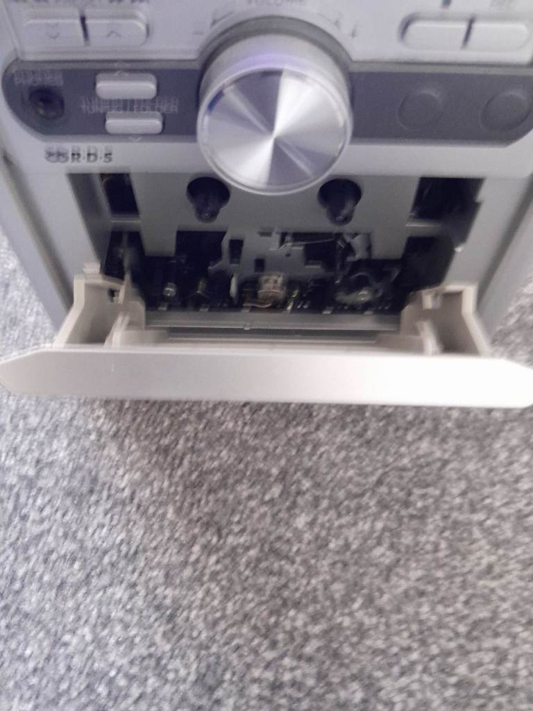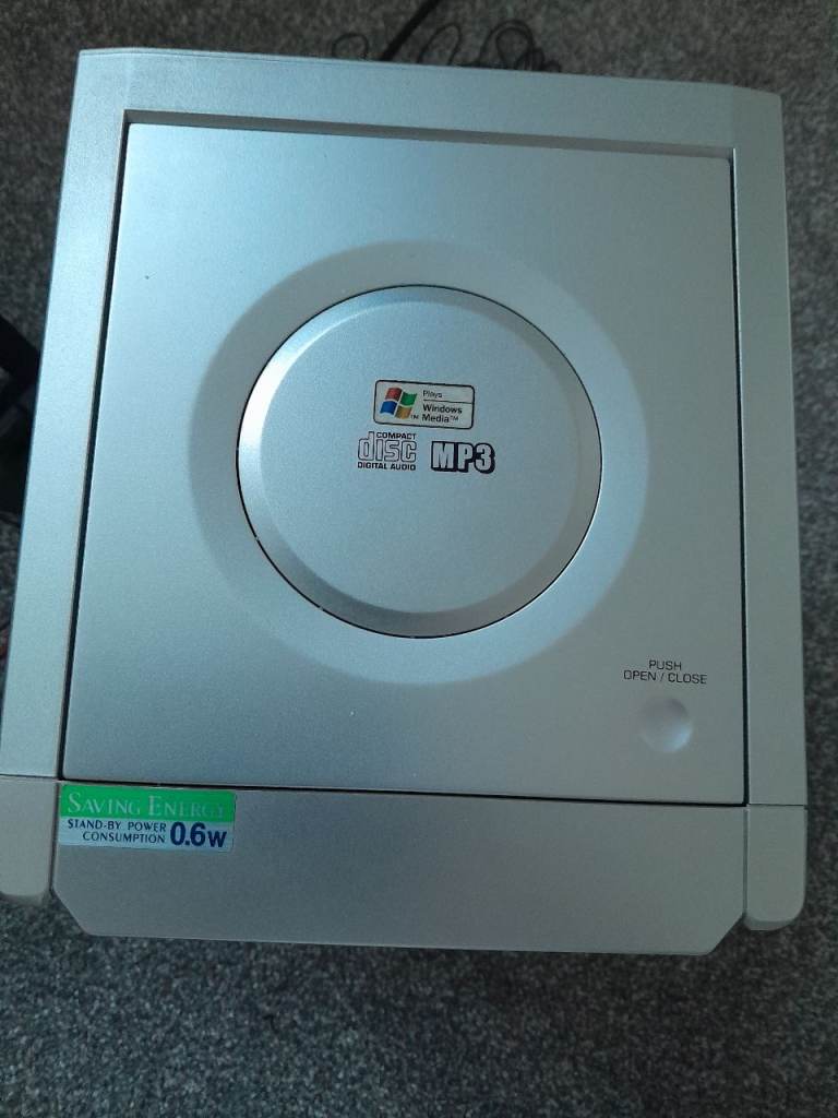 Sharp Hi-Fi system. Features include MP3 player, CD, cassette deck and radio. Excellent condition barely used. 2 speakers and remote control. Height 9", Width 6.5", Depth 8"