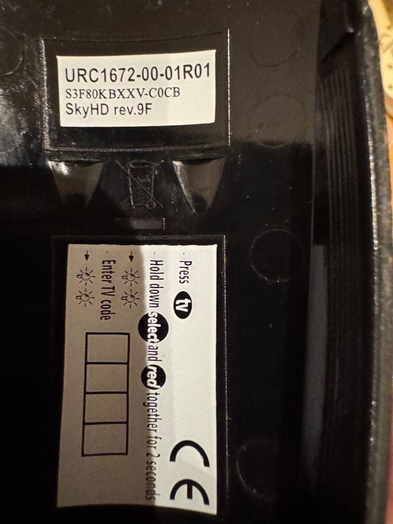 Sky remote sky hd rev 9f
