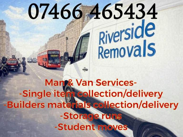 Riverside Removals provides dependable and efficient removal services for residential and commercial clients. Specialising in house moves, office relocations, and single-item transport, our experienced team ensures your belongings are handled with utmost care.Fully insured and licensedModern fleet of vans for all job sizes Local and long-distance services Flexible bookings, including weekends Complimentary, no-obligation quotations Contact: For inquiries or to schedule a service, please contact us at 𝟢𝟟466465434. Trust Riverside Removals for a seamless and stress-free moving experience.Price: Competitive rates tailored to your needs. Affordable & ReliableDescription:
