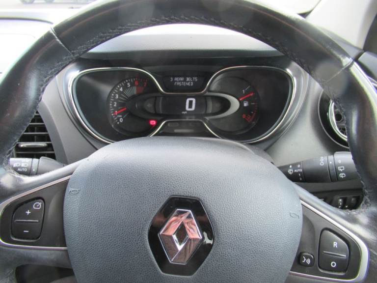 .Navigation System, Climate Control, Cruise Control + Speed Limiter, Bluetooth + USB, Alloy Wheels, Keyless Entry, Electric Front Windows + One Touch + Anti-pinch, Electric Rear Windows, Electric Adjustable Heated Door Mirrors, Automatic Headlights + Automatic Windscreen Wipers, Rear Wiper, Trip Computer, Height/reach Adjust Steering Wheel, Rear Door Child Safety Locks, Deadlocking System, Height Adjustable Driver's Seat, Body Colour Door Handles, Pollen Filter, Variable Intermittent Front Wash/wipe, Storage Compartments In Doors, Height Adjustable Front Headrests, Seatbelt Warning, Fingertip Controls For Audio System, Front Seat Backrest Storage Nets, 12V Accessory Socket, Chrome Insert To Side Strips, 2 Cupholders, RAID (Renault Anti-Intruder Device) With Automatic Door Locking, Body Coloured Bumpers, Voice Control System, Variable PAS, Leather Steering Wheel And Gear Knob, 3 Rear Height Adjustable Headrests, Variable Boot Floor, Front Side Airbags(head+thorax), Chrome Headlight Surround, Driver/Front Passenger Airbags, 3 Point Seatbelts On All Rear Seats, ABS+EBA, Hill Start Assist, Thatcham Cat 2 Engine Immobiliser, Front Passenger Airbag Deactivation, 60/40 Split Rear Seats, ISOFIX On Front Passenger And Rear Outer Seats, Chrome Trim On Tailgate, Storage Area On Top Of Dashboard, ESC - Electronic Stability Control + Traction Control, DAB Digital Radio, Tyre Pressure Monitor, Cornering Front Fog Lights, Auxiliary Input Socket, LED Daytime Running Lights, Reversible Boot Floor, Gloss Black Door Armrest, Removable Storage Between Front And Rear Passenger,