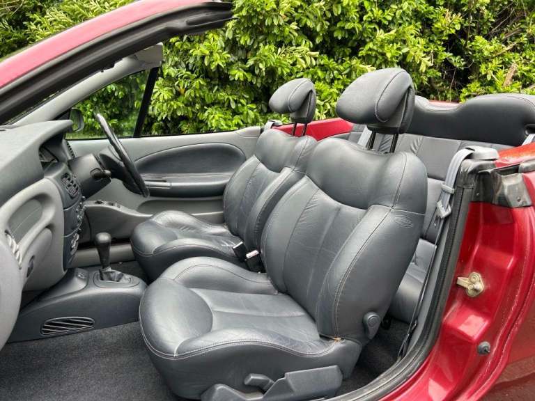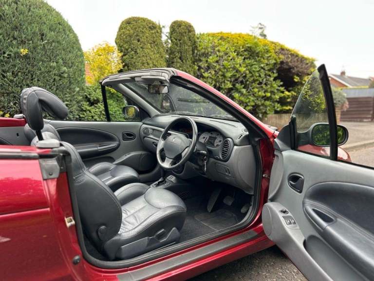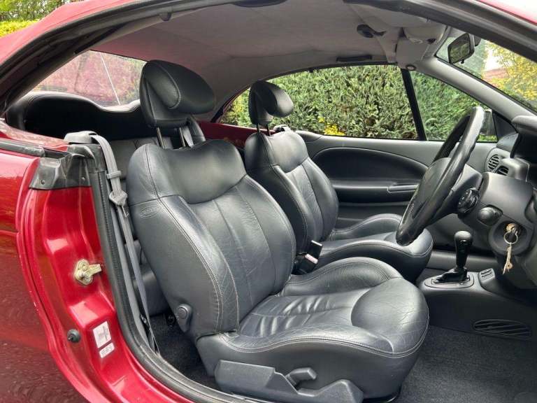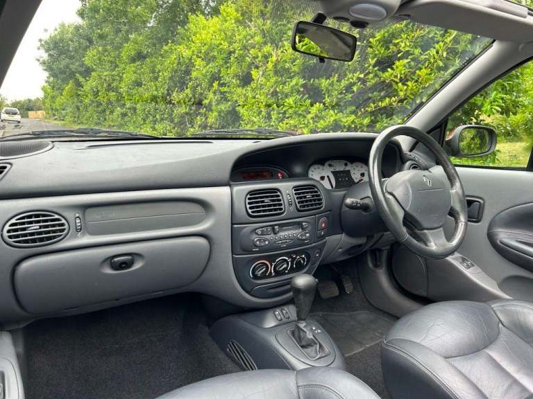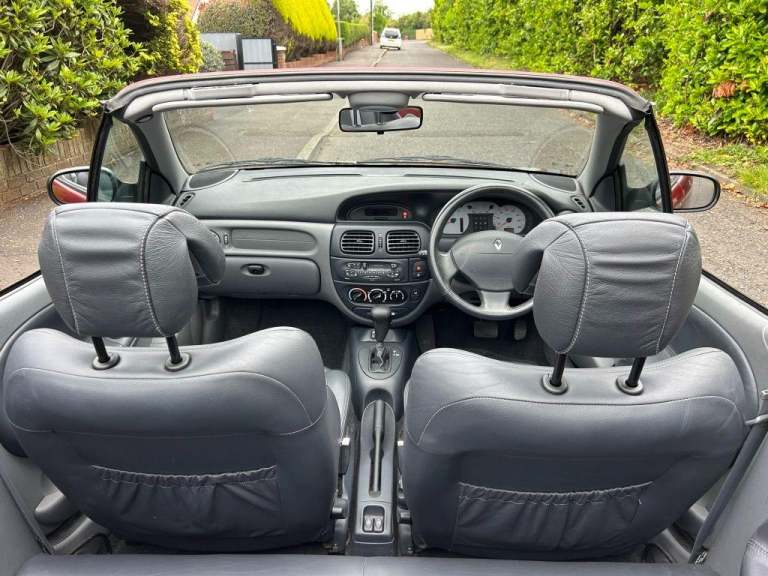 No, that isn't a typo... it's a genuine FIFTEEN thousand miles from new. A garaged summer car belonging to a French lady living in the South of England, it has lived an extremely gentle life that has still included regular visits to Renault for servicing, sometimes with less than 500 miles between oil changes. Stunning colour scheme of Cherry Red with a complimentary red hood and a full black leather interior. The roof is watertight and in fully operational condition, the interior still smells like new. 1.6 petrol engine linked to a smooth automatic gearbox means it's the perfect relaxed summer top-down cruiser. Spec includes remote central locking, a boot-mounted CD changer and 15 inch alloy wheels. Drives like new! All handbooks and 3 keys present, the car will be sold to it's lucky new owner with a long MOT and for good measure we will change the timing belt kit and water pump. One for a Renault enthusiast to keep in the garage for show season!