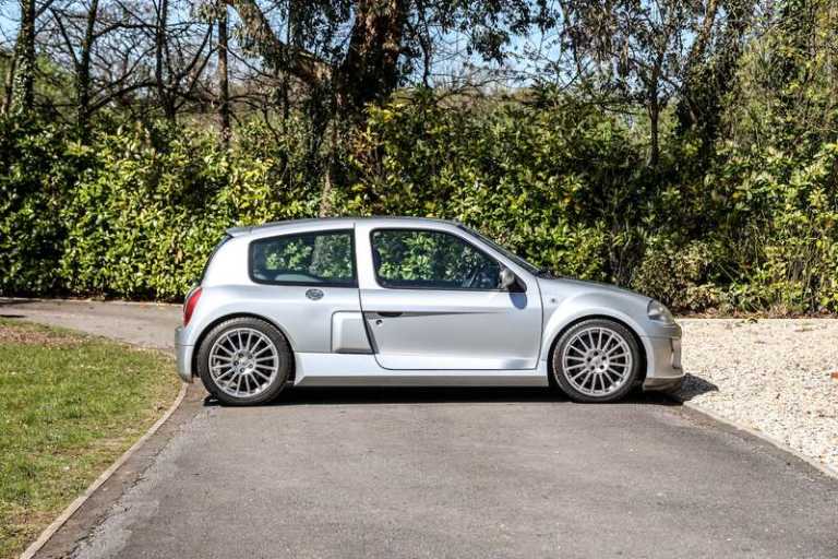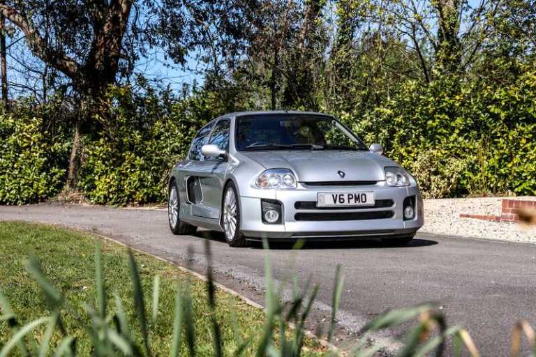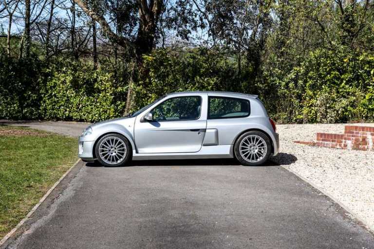 This lot will be auctioned via Iconic Auctioneers, The Classic Sale at Supercar Fest 2026 on Saturday the 16th of May, Sywell Aerodrome, Sywell, Northampton, NN6 0BN. , UK-supplied, right-hand drive Phase 1 Renault Clio V6 first registered in November 2002 and understood to be one of just 223 examples finished in Iceberg Silver,A spin-off from the Clio Trophy race series and first previewed at the Paris Motor Show in 1998, the Clio V6 230 was in many ways the spiritual successor to the mid-engined 5 Turbo,Where the rear seats would normally be nestled a tweaked version of the proven and unstressed 3.0-litre, 24v, V6 unit from the Laguna saloon offering access to 227bhp (230PS) fed to the rear wheels and enabling 0-60mph in 6.2 seconds and 146mph,The Phase 1 cars were assembled by hand at the Tom Walkinshaw Racing (TWR) workshops in Uddevalla in Sweden, using parts shipped from France, producing just 1,513 examples between 2001 and 2003,This example has formed part of a carefully curated collection of significant hot hatches over the past decade, stored correctly in a modern, temperature-controlled facility,Showing signs of considered ownership over the years with a substantial history file documenting maintenance by respected specialist garages,Notable recent mechanical works (in terms of mileage) include a cambelt and water pump replacement at 66,954 miles, followed by clutch and flywheel renewal,Retains a high degree of originality, further supported by inclusion of a set of standard Phase 1 alloy wheels,At the time of cataloguing the Clio fired into life easily, sounded healthy and manoeuvred well on the photoshoot. Offered with the private registration ‘V6 PMO’, which forms part of the sale,Increasingly regarded as one of the most distinctive and collectible modern classics of the early 2000s, combining rarity, striking design and a unique mid-engined layout,