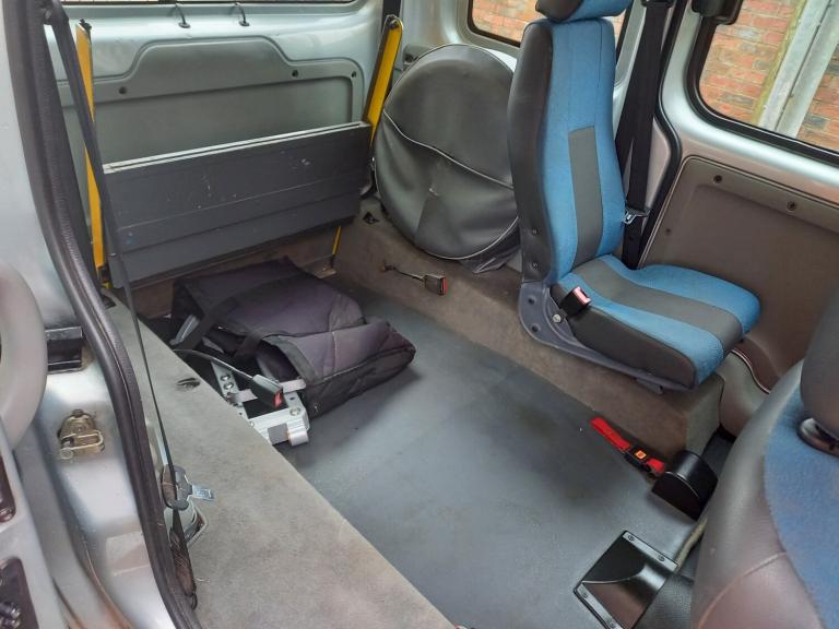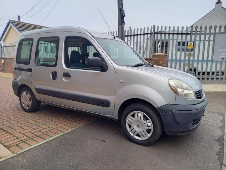 2008 08 RENAULT KANGOO 1.2 AUTHENTIQUE 5 DOOR PETROL GREY METALLIC 74134 MILES PART SERVICE HISTORY WHEELCHAIR ACCESS TWO SIDE SLIDING DOORS 3 SEATS MOT UNTIL 14TH OCTOBER 2026 AYRSHIRE CAR TRADERS LTD 17 PEEBLES STREET AYR KA8 8DP.