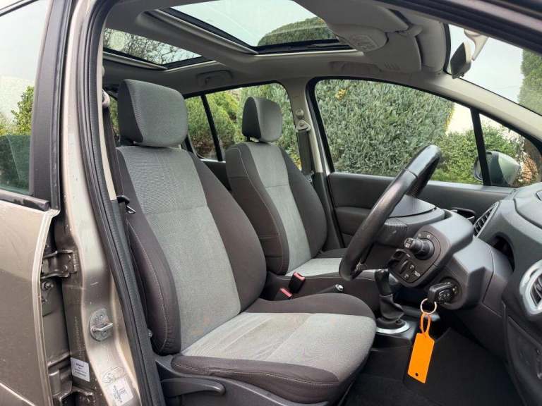 Traded in directly to us, a tidy Modus in Stone metallic with a bright and airy interior thanks to the panoramic glass roof. Good service history includes a recent clutch and it comes with a long MOT expiring February 2027. 1.2 TCe petrol engine gives low running costs and simple maintenance. A breeze to drive with excellent visibility! Two keys.