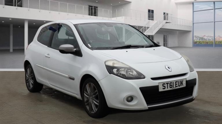 Renault Clio 1.2 TCE GT-LINE TOM TOM (Sat Nav Edition) 3dr Hatchback.. Registered - 28/10/2011 (61-reg).. 63,000 miles.. Full service history (6 x service stamps).. Mostly main Renault dealer service records - maintained regardless of cost.. Just serviced - December 2025.. MOT - December 2026.. 1 year MOT.. 1 former keeper from new.. 2 x keys.. Tom Tom Sat Nav media system.. Onboard distance-to-empty computer.. Cruise control.. Climate control.. Half leather interior.. 16 inch alloys - fitted with great tyres all round.. Grade 2 condition - very clean stunning example.. Air conditioning.. Power assisted steering.. ABS.. Alarm / central locking.. Electric windows.. Electric mirrors.. AUX input.. ISO-FIX child seat anchor points.. Full size spare wheel.. Full detailed valet has been carried out.. Outstanding MPG 70+.. Ideal first car or little hatchback with great looks.. Super reliable and very economical running costs... HPI clear.. Up to 2 years warranty available with the UK's best award winning warranty company... FINANCE AVAILABLE...