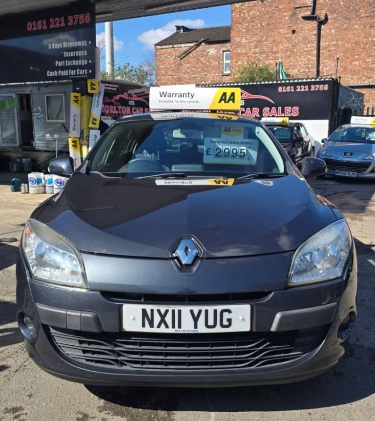 Here we have for sale a lovely 2011 renault megane dynamique tom tom edition in a lovely metallic grey. It is the small 1.6L petrol engine which is great for new or first drivers as they are cheap to insure and very economical to run. It is only 2OWNERS from brand new and this is reflected in the condition of the car. It has covered very low mileage for its age of just over 43000 miles backed by some service history. It will come with a full 12month mot with no advisories and a full service from ourselves upon purchase. Very clean car both cosmetically and mechanically. First to see will buy. Here at chorlton car sales we strive to deliver 100% customer satisfaction to all our customers therefore we offer a full 3month aa warranty for complete piece of mind. Extended warranty is available by the reputable aa warranties for up to 12months as we are approved dealers for them. They are the uks number one warranty company. We are now proudly part of the aa dealer promise as aa approved dealers which means you can buy through us with complete confidence. Delivery available. 5day driveaway insurance available.12month aa breakdown cover with all vehicles. All major cards accepted. All forms of payment accepted. Open 7days a week AA APPROVED DEALERS,CONTACTLESS DELIVERY AVAILABLE, 12MONTH BREAKDOWN COVER WITH ALL VEHICLES, 3MONTH AA WARRANTY WITH ALL VEHICLES, ALL FORMS OF PAYMENT ACCEPTED, ALL MAJOR CARDS ACCEPTED, OPEN 7DAYS A WEEK .Oyster Grey, Mercury, Pearlescent paint, Carminat TomTom Live Satellite Navigation Western Europe Map Upgrade, 4x15W RDS Radio CD with Bluetooth & Multifunction tunepoint, DualZone Climate Control, Climate Control - Automatic Dual Zone, Additional mapping for Carminat TomTom, Electric folding door mirrors, Door Mirrors - Electrically Operated - Heated - Folding, Emergency Spare Wheel, 12V Power Socket, 16in Alloy Wheels - Proteus, 16in Proteus Alloy Wheels, 16in Sport Alloy Wheels, 4x15W Radio & single CD with Bluetooth & MP3 connection, 4x15W Radio CD with Fingertip Remote Control and AUX Input, ABS - Anti Lock Brakes, ASR - Anti-Skid Regulation, AUX Input, Adjustable Dashboard Illumination, Air Conditioning - Manual, Air Conditioning with pollen filter, Air Recirculation, Airbags - Drivers Two Stage Auto Adaptive, Airbags - Front Lateral, Airbags - Front Passenger Deactivation, Airbags - Front Passengers Two Stage Adaptive, Airbags - Front and Rear Curtain, Alarm - Thatcham Category 1, Anti-Drill Door Locks and Ignition Barrel, Armrest - Front Centre with Storage Compartment, Automatic Windscreen Wipers with Rain Sensors, Bluetooth Connectivity, Brake Assist, Bumpers - Body Coloured, CSV - Understeer Control, Carminat TomTom Live Satellite Navigation System with Joystick Control, Centre Console, Cruise Control with Speed Limiter, Deadlocking, Door Handles - Body Coloured - Front, Door Mirrors - Body Coloured, Door Mirrors - Electrically Adjustable - Manual Folding and Heated, EBA - Emergency Brake Assist, EBD - Electronic Brake Distribution, ESC - Electronic Stability Control, Electric Windows - Front with Anti Pinch, Electric Windows - Rear, Exterior Temperature Sensor, Fingertip Remote Control, Footwell Lighting, Front Fog Lights, Front and Rear Towing Rings, Fuel Computer, Headlights - Automatic On, Headlights - Double Optic, Headlights - See Me Home, Headrests - Front and Rear Height Adjustment, Headrests - Rear Height Adjustable x3, ISOFIX - Child Seat Fixing Points - Rear Left Seat, Interior Courtesy Light Controlled By All 4 Doors, Keycard - Handsfree - Automatic Opening Upon Approach, Load Anchorage Points, Low Fuel Level Warning Light, Luggage Compartment - Storage For First Aid Kit, Passenger Height Adjustment Seat, Pollen Filter, Power Assisted Steering, Power Assisted Steering - Electric Variable, Push Button Start, RAID - Renault Anti Intruder Device, Rear Door Pockets with Can Holders, Remote Central Locking, Seats - 60-40 Split