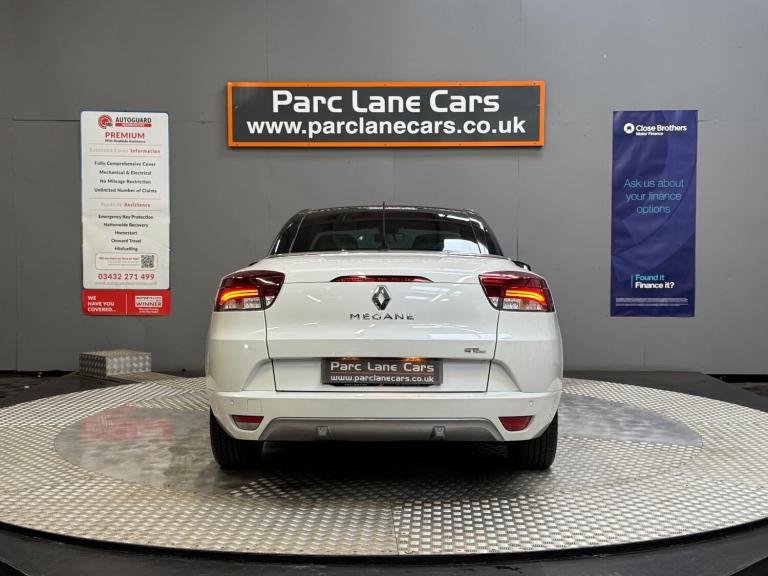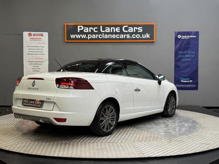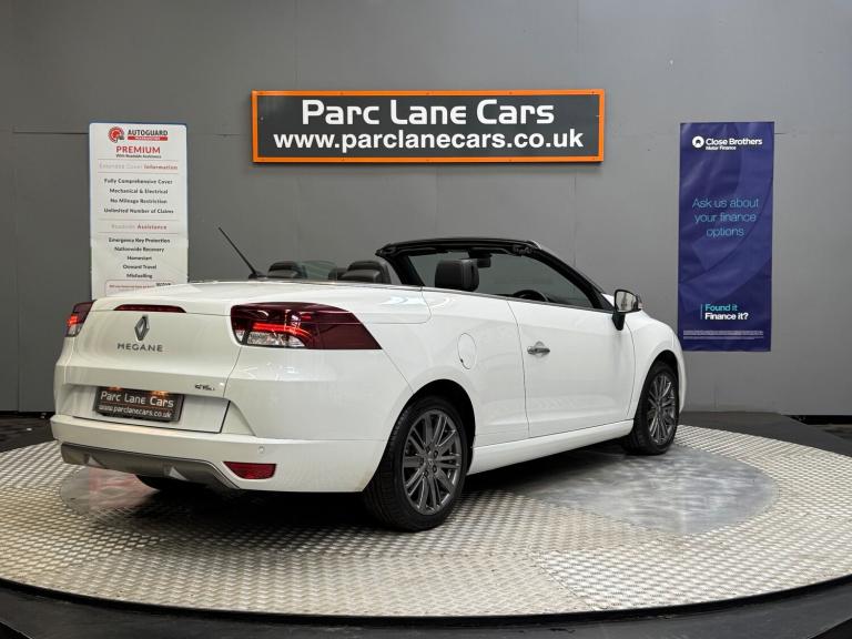 Parc Lane Cars of Gosforth proudly present this lovely Renault Megane 1.9 dCi 130 GT Line TomTom Convertible, finished in stunning Glacier White with dark half-leather/cloth GT Line embossed interior trim. A stylish, sporty and refined hard-top convertible offering great performance, strong economy and excellent comfort. Mileage & Service History This Megane has covered only 85,174 miles and comes with a comprehensive service history, ensuring confidence and peace of mind for its next owner. Supplied with 2 remote keys. Factory Extras & Specification • Satellite navigation (TomTom) • Bluetooth connectivity • Cruise control • Climate control • Panoramic sunroof • Electric folding hard-top roof • Alloy wheels • GT Line styling package • And much more Vehicle Highlights A standout example of the Renault Megane GT Line Convertible, combining sleek coupe styling with the enjoyment of open-top motoring. With its efficient 1.9 dCi 130 engine, premium GT Line interior, and generous specification, this Megane offers excellent value and a superb driving experience. Key Details Model: Renault Megane 1.9 dCi GT Line TomTom Convertible Mileage: 85,174 miles Transmission: Manual Fuel Type: Diesel Colour: Glacier White Interior: Dark GT Line half-leather/cloth Keys: 2 remote keys Finance & Part Exchange Finance is available, and part exchange is welcome. This stunning Renault Megane GT Line Convertible is not to be missed. Contact Parc Lane Cars Gosforth today to arrange a viewing or test drive. Listed specification shown as accurately as possible. Errors may occur. Please ask us to clarify any queries. REG NO. YF11BWA Features Include: , carminat tom tom, cruise control + speed limiter, door/boot open warning light, low fuel level warning light, oil level gauge, outside temperature gauge, rev counter, trip computer, variable pas, fap, sports chassis, auxiliary input socket, fingertip controls for audio system, 'guide me home' headlamps, 'smart' windscreen wipers, automatic front windscreen wipers, automatic headlights, black headlamp surrounds, chrome door handles, chrome door mirrors, chrome fog light surround, chrome windscreen surround, day time running light, double optic headlights, electric heated door mirrors, electrically folding glass roof/sunblind, folding door mirrors, front fog lamps, heated rear windscreen, integrated fuel filler cap, one touch electric