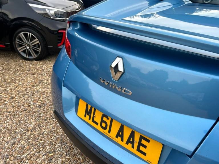 Discover this 2011 Renault Wind VVT GT Line with exceptionally low mileage for its age, having covered just 18389 miles. This stylish convertible boasts a clear vehicle history check, offering peace of mind. Inside, youll find manual air conditioning and climate control to keep you comfortable, alongside automatic headlights for convenience. Stay connected on the go with Bluetooth connectivity. This Renault Wind VVT GT Line is designed to be economical and practical. Its 1.6L petrol engine achieves an impressive 41 miles per gallon, which is better than many similar vehicles. Furthermore, its low CO2 emissions are also a positive indicator compared to other cars in its class. This model also benefits from a low insurance group, potentially saving you money on running costs. Despite its sporty appearance, it offers surprisingly large boot space, making it a versatile choice for everyday use. + £49 admin fee. .17in Alloy Wheels, 2 x 35W Radio Single CD MP3 and Fingertip Control, ABS - Anti Lock Brakes, Air Conditioning - Manual, Airbags - Driver, Airbags - Front Lateral, Airbags - Front Passenger, Airbags - Front Passenger Deactivation, Alarm - Thatcham Category 1, Automatic Climate Control and Auto Headlights and Wipers, Automatic Windscreen Wipers with Rain Sensors, AUX Input, Bluetooth Connectivity, Brake Assist, Climate Control - Air Conditioning, Cruise Control with Speed Limiter, Door Mirrors - Electrically Adjustable - Manual Folding and Heated, EBD - Electronic Brake Distribution, Electric Windows, Electronic Engine Immobiliser, ESC - Electronic Stability Control, Fingertip Remote Control, Front Fog Lights, Fuel Computer, Headlights - Automatic On, Headlights - See Me Home, Multi-Function Tune Point, Passenger Height Adjustment Seat, Power Assisted Steering, Power Assisted Steering - Electric Variable, Remote Central Locking, Retractable - 12 Seconds - Hard Roof, Seats - Drivers Height Adjustment, Seats - Sports Style Front with Extra Lateral Support, Steering Wheel - Height Adjustable, Tinted Windows, Tyre Inflation Kit