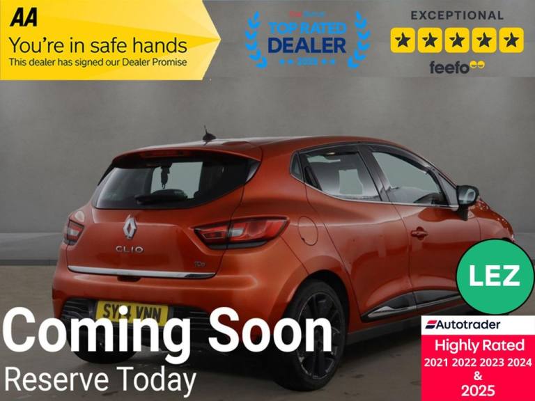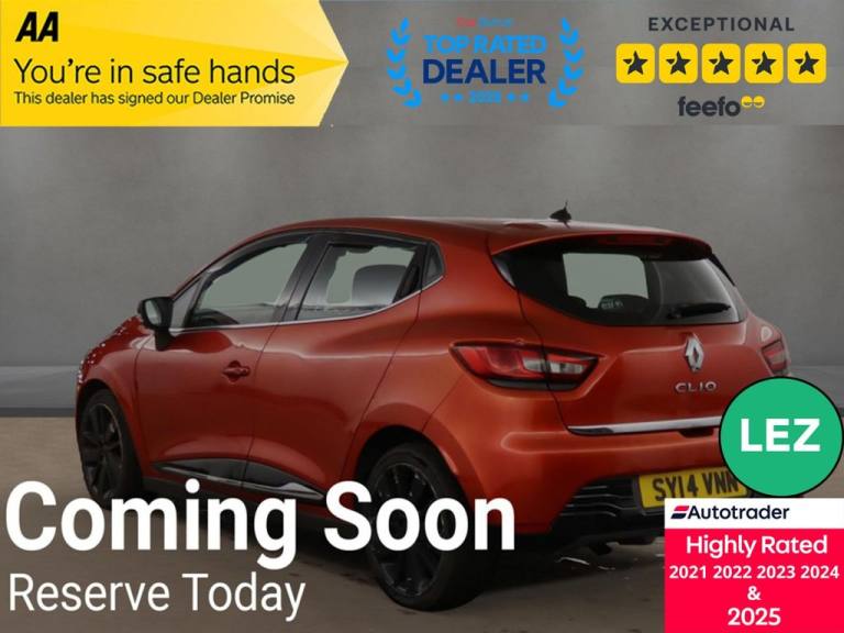 Beautiful Renault Clio Dynamique Nav Model Finished In Flame Red - Car Has Been Very Well Taken Care Of & Maintained And Benefits From A Full Service History - LEZ Compliant - Ultra Low Running And Maintenance Costs With £20 Road Tax And An Up To 72 MPG - Dynamique S Nav Model With Lots Of Great Features Like Renault Media Nav - USB - Automatic Climate Control - Rear Parking Sensors - Cruise Control With Speed Limiter - 17" Alloy Wheels - ECO Mode - Daytime Running Lights - Hill Start Assist And Much More - 2 Keys Present - Comes Fully Serviced With A Full Years Independent MOT On Purchased - 30 Days Parts & Labour Warranty Included - Call & Secure This Car Today With A Low Deposit of £95 ! Fully Comprehensive Parts & Labour Warranty Included On All Vehicles ! 12 Months AA Breakdown Included With Every Vehicle ! Low Rate Finance Available, Ask For Details ! We Offer Various Extended Warranty Options From 3 Months To 1 Year ! We Welcome Any Inspection On Our Vehicles ! AA Approved Dealership ! Part Exchanges Welcome ! We Take Care Of The Whole Process ! Fair Prices Paid ! All Of Our Vehicle Are Prepared With The Highest Standards and a 99 Point Inspection ! Family Run Business ! Buy With Confidence ! Open 6 Days A Week ! Closed On Sundays ! Please Call Ahead To Check Availability ! PLEASE NOTE - VEHICLES CANT BE RESERVED WITHOUT A DEPOSIT/RESERVATION.2 Keys - Sat nav - F/S/H - LEZ Compliant, Ideal First Car - Insurance Group 10 -, Rear Parking Sensors - Bluetooth - , Fully Serviced With A Full Years MOT -, Low Running Costs - Up To 72 MPG -, Flame Red, 1.2L Storage Shelf Above Glovebox, 12V Power Socket, 17in Alloy Wheels - Desire with Black Inserts, 2x Storage Spaces for 2 Cups and Miscellaneous Items near Handbrake, 4L Front Glovebox, 7in Touch Screen, ABS - Anti Lock Brakes, Airbags - Driver, Airbags - Front Lateral, Airbags - Front Passenger, Airbags - Front Passenger Deactivation, Airbags - Thorax, Anti Drill Door Locks, Arkamys 4x20W Radio and Handsfree Technology Renault Bass Reflex System, Armrest - Front Centre with Storage Compartment, Automatic Windscreen Wipers with Rain Sensors, Bluetooth Connectivity, Bumpers - Body Coloured, Bumpers - Front - Gloss Black with Chrome Surround, CSV - Understeer Control, Centre Console - Gloss Black, Chrome Instrument Dial Surrounds, Chrome Window Surrounds, Climate Control - Automatic with One Touch Demist Function and Air Quality Regulator, Cruise Control with Speed Limiter, Dashboard - Soft Touch Dark Carbon, Deadlocking, Door Handles - Body Coloured - Front, Door Handles - Interior Chrome, Door Handles - Interior Gloss Black Surround, Door Mirrors - Electrically Folding, Door Mirrors - Gloss Black Housing, EBA - Emergency Brake Assist, EBD - Electronic Brake Distribution, ESC - Electronic Stability Control, ETC - Electronic Traction Control, Eco Mode, Electric Windows - Front and Rear, Exterior Chrome Touches - Side Door- Boot Lid Strip and Front Grille Strips, Fingertip Remote Control, Front Fog Lights, Front Speaker Surrounds - Gloss Black with Red Bass Reflex Logo, Fuel Computer, Gear Change Indicator, Gear Gaiter Surround - Gloss Black, Gear Knob - Chrome, Gloss Black Front and Side Air Vents Surrounds, Gloss Black Surround Front Speakers with Logo, HSA - Hill Start Assist, Handsfree Keycard with Push Button Start-Stop Function, Handsfree Technology and Renault Bass Reflex System, Headlights - Automatic On, Headlights - Black Surrounds, Headlights - Daytime Running Lights, Headrests - Front Height Adjustable, Headrests - Rear x3, Heating System with Pollen Filter, ISOFIX - Child Seat Fixing Points - Outer Rear Seats, Lane Change Function, Lightly Tinted Windows, Lower Door Protector - Black Gloss with Chrome Insert, Navteq Nav n Go Satellite Navigation, On-Board Multimedia System, Parking Sensors - Rear, Passenger Dashboard Storage with Anti-Slip C