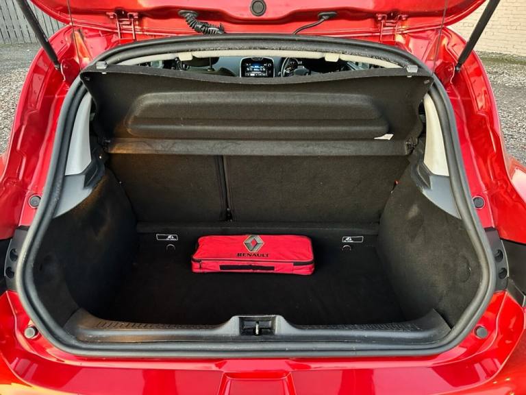 .1.2L Storage Shelf Above Glovebox, 12V Power Socket, 17in Alloy Wheels - Desire with Black Inserts, 2x Storage Spaces for 2 Cups and Miscellaneous Items near Handbrake, 4L Front Glovebox, 7in Touch Screen, ABS - Anti Lock Brakes, Airbags - Driver, Airbags - Front Lateral, Airbags - Front Passenger, Airbags - Front Passenger Deactivation, Airbags - Thorax, Anti Drill Door Locks, Arkamys 4x20W Radio and Handsfree Technology Renault Bass Reflex System, Armrest - Front Centre with Storage Compartment, Automatic Windscreen Wipers with Rain Sensors, Bluetooth Connectivity, Bumpers - Body Coloured, Bumpers - Front - Gloss Black with Chrome Surround, CSV - Understeer Control, Centre Console - Gloss Black, Chrome Instrument Dial Surrounds, Chrome Window Surrounds, Climate Control - Automatic with One Touch Demist Function and Air Quality Regulator, Cruise Control with Speed Limiter, Dashboard - Soft Touch Dark Carbon, Deadlocking, Door Handles - Body Coloured - Front, Door Handles - Interior Chrome, Door Handles - Interior Gloss Black Surround, Door Mirrors - Electrically Folding, Door Mirrors - Gloss Black Housing, EBA - Emergency Brake Assist, EBD - Electronic Brake Distribution, ESC - Electronic Stability Control, ETC - Electronic Traction Control, Eco Mode, Electric Windows - Front and Rear, Exterior Chrome Touches - Side Door- Boot Lid Strip and Front Grille Strips, Fingertip Remote Control, Front Fog Lights, Front Speaker Surrounds - Gloss Black with Red Bass Reflex Logo, Fuel Computer, Gear Change Indicator, Gear Gaiter Surround - Gloss Black, Gear Knob - Chrome, Gloss Black Front and Side Air Vents Surrounds, Gloss Black Surround Front Speakers with Logo, HSA - Hill Start Assist, Handsfree Keycard with Push Button Start-Stop Function, Handsfree Technology and Renault Bass Reflex System, Headlights - Automatic On, Headlights - Black Surrounds, Headlights - Daytime Running Lights, Headrests - Front Height Adjustable, Headrests - Rear x3, Heating System with Pollen Filter, ISOFIX - Child Seat Fixing Points - Outer Rear Seats, Lane Change Function, Lightly Tinted Windows, Lower Door Protector - Black Gloss with Chrome Insert, Navteq Nav n Go Satellite Navigation, On-Board Multimedia System, Parking Sensors - Rear, Passenger Dashboard Storage with Anti-Slip Carpet, Power Assisted Steering - Electric Variable, Push Button Start, RAID - Renault Anti Intruder Device, Rear Diffuser - Black Gloss, Rear Spoiler - Body Coloured, Remote Central Locking, Renault MediaNav