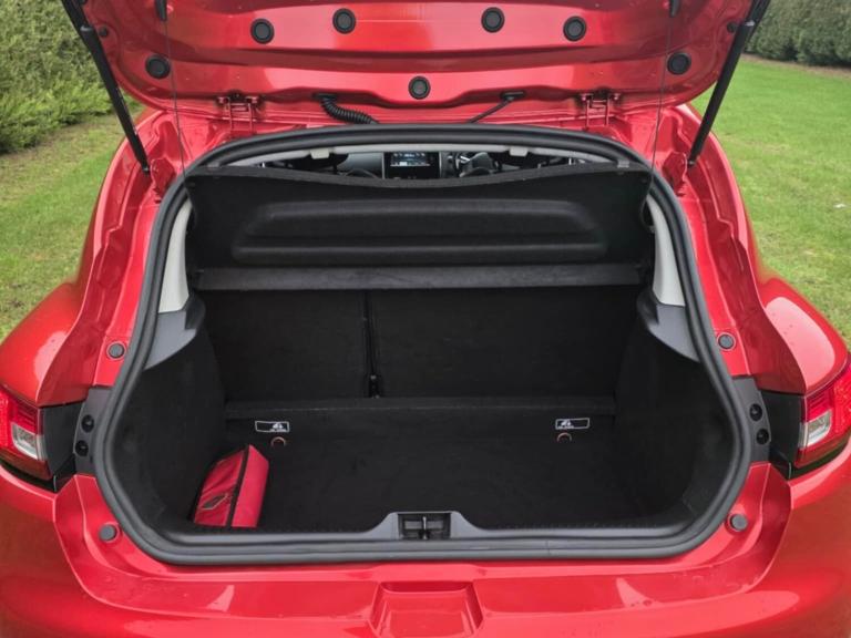 3 point seatbelts on all rear seats, Curtain airbags, Driver/Front Passenger airbags, Driver/front passenger side airbags, Front passenger airbag deactivation, Height adjustable driver's seatbelt, Seatbelt warning, Anti-drill door locks, Child lock control of rear doors and windows, Deadlocking system, Hands free Renault card, Locking fuel filler cap, RAID (Renault Anti-Intruder Device) with automatic door locking, Remote central locking, Thatcham Category 2 engine immobiliser, Anti-lock Brake System + Electronic Brakeforce Distribution + Brake assist, Electronic Stability Programme + Traction control + Understeer control, Hill start assist, Electric adjustable door mirrors, Electric folding door mirrors, Electric front windows + one touch + anti-pinch, Electric rear windows, Front wipers with intermittent delay, Rear wiper, Tinted windows, Black rear diffuser, Body colour door handles, Body coloured bumpers, Chrome strip on lower grille, Gloss black finish B pillar, Gloss black front bumper insert with chrome surround, Rear spoiler, Solid paint, Automatic headlights + automatic windscreen wipers, Chrome surround for front fog lights, Front fog lamps, 3 rear height adjustable headrests, 60/40 split rear seats, Driver's seat height adjustment, Folding front passenger seat, Height adjustable front headrests, Isofix system on outer rear seats, Black interior trim, Gloss black air vent surround, Gloss black centre console, Gloss black dashboard inserts, Instrument dials in chrome surround, 12V Accessory socket, 2 cupholders, Chrome gear knob insert, Chrome interior door handles, Design cloth upholstery, Front centre armrest with storage compartment, Gloss black door handle surrounds, Glovebox, Height/reach adjust steering wheel, Leather steering wheel, Air recirculation control, Automatic climate control, Pollen filter, Cruise control + speed limiter, Variable power assisted steering, Renault MediaNav with 7" touch screen and Navteq Nav 'n' Go Satellite Navigation, Trip computer, 4x20W Arkamys radio with bluetooth handsfree and USB, Fingertip controls for audio system, USB connection, 17" Desire alloy wheels with black inserts, Tyre puncture repair kit