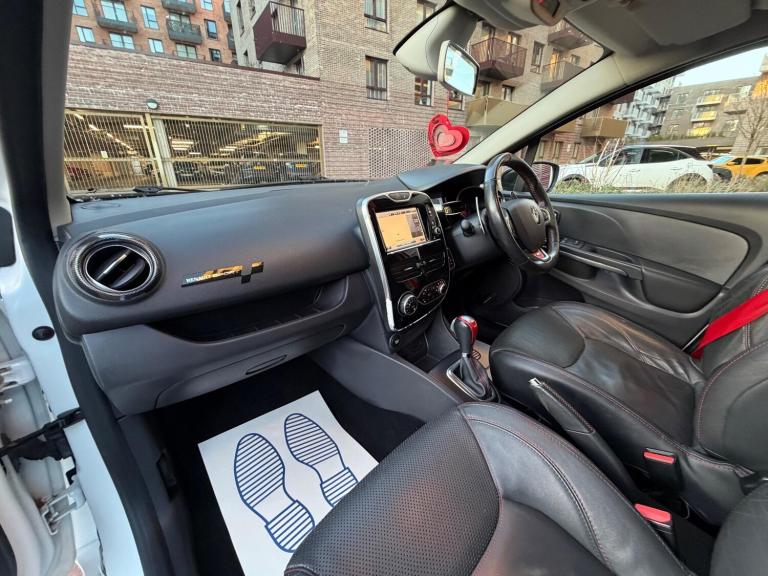 This 2015 Renault Clio TCe Renaultsport Nav Trophy offers an exciting driving experience with its impressive acceleration. This Euro 6 compliant model is powered by a 1.6L petrol engine and comes with a 6 month warranty for your peace of mind. It features a handsfree keycard with push button start and stop, allowing for keyless entry.The Renaultsport Nav Trophy trim includes a R-Link multimedia system with Bluetooth connectivity and a rear parking camera, complemented by rear parking sensors and parking assistance. For your comfort, it boasts automatic climate control with a one touch demist function and an air quality regulator. This Clio achieves 0-62mph in just 6.6 seconds, demonstrating its superior performance compared to other vehicles in its class.AMAZING VALUE FOR MONEY AUTOMATIC COLOUR SCREEN SAT NAV REVERSE AIR CONDITIONING CLIMATE CONTROL BLUETOOTH DAB RADIO FULL HEATED LEATHER INTERIOR ALLOY WHEELS ELECTRIC WINDOWS POWER STEERING VERY ECONOMICAL AND RELIABLE CAR DRIVES AND LOOKS SUPERB STUNNING CONDITION CATEGORY S THIS VEHICLE WILL BE SOLD WITH 6 MONTHS COMPREHENSIVE WARRANTY COVER AND 12 MONTHS AA BREAKDOWN COVER NATIONWIDE DELIVERY AVAILABLE PX WELCOME FOR MORE INFORMATION OR TO BOOK A VIEWING PLEASE CALL [Phone number removed] OR [Phone number removed] OR [Phone number removed] OR [Phone number removed]