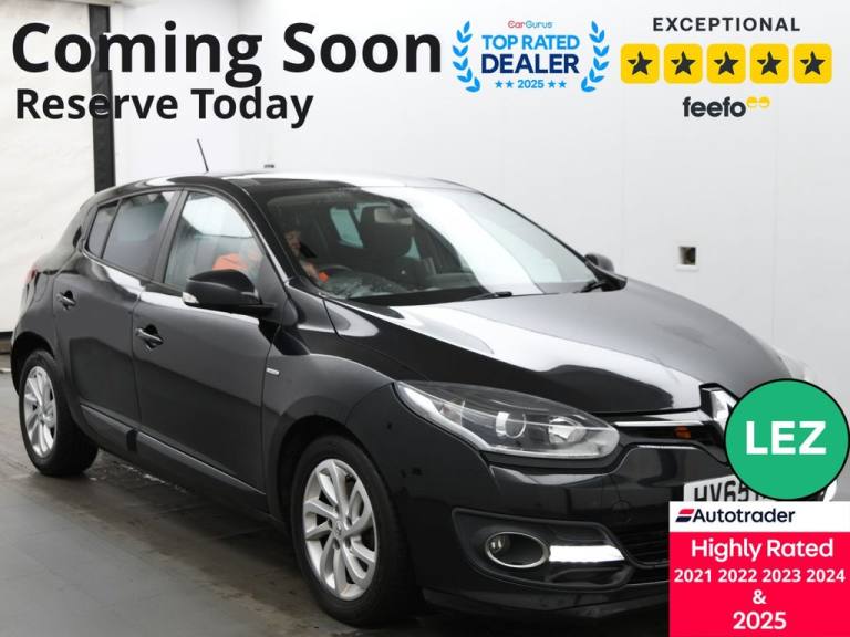 Great Megane In Diamond Black With All The Bells And Whistles - This Is One Of The Most Economical Cars - Ultra Low Running And Maintenance Costs With £20 Road Tax And Up To 83 MPG - LEZ Compliant - Car Has Been Well Looked After And Cared For And Benefits From A Full Service History - Top Of The Range Model With Tom Tom Sat Nav - Bluetooth Hands Free - USB/AUX - RDS Radio-CD-MP3-AUX-USB - 16" Alloy Wheels - Cruise Control With Speed Limiter - Rear Parking Sensors - Privacy Glass-Extra Tint Rear - Thatcham Alarm Cat 1 - Front & Rear Towing Rings - Hill Start Assist & Much More - Car Comes Fully Serviced With Full Years Independent MOT On Purchase - 1 Months Parts & Labour Warranty Included - Call & Secure This car Today With A Low Deposit Of £95 ! Fully Comprehensive Parts & Labour Warranty Included On All Vehicles ! 12 Months AA Breakdown Included With Every Vehicle ! Low Rate Finance Available, Ask For Details ! We Offer Various Extended Warranty Options From 3 Months To 1 Year ! We Welcome Any Inspection On Our Vehicles ! AA Approved Dealership ! Part Exchanges Welcome ! We Take Care Of The Whole Process ! Fair Prices Paid ! All Of Our Vehicle Are Prepared With The Highest Standards and a 99 Point Inspection ! Family Run Business ! Buy With Confidence ! Open 6 Days A Week ! Closed On Sundays ! Please Call Ahead To Check Availability ! PLEASE NOTE - VEHICLES CANT BE RESERVED WITHOUT A DEPOSIT/RESERVATION.F/S/H - 2 Keys - LEZ - BTooth , Sat Nav - £20 Tax - ISOFIX, Rear Parking Sensors - Air Con, Fully Serviced With A Full Years MOT -, Low Running Costs - Up To 83 MPG -, 12V Socket - Rear Centre Console, 12v Socket - Front, 16in Alloy Wheels - Kaleido, 4x20W RDS Radio CD-MP3 with AUX Input and Fingertip Remote Control, ABS - Anti Lock Brakes, ASR - Anti-Skid Regulation, AUX Input, Adjustable Dashboard Illumination, Air Recirculation, Airbag - De-Activation for Front Passenger, Airbags - Drivers Two Stage Auto Adaptive, Airbags - Front Passengers Two Stage Adaptive, Airbags - Front Side, Airbags - Front and Rear Curtain, Alarm - Thatcham Category 1, Anti-Drill Door Locks and Ignition Barrel, Automatic Windscreen Wipers with Rain Sensors, Bluetooth Connectivity, Bumpers - Body Coloured, CSV - Understeer Control, Chrome Door Sill Plates - LIMITED, Climate Control - Automatic Dual Zone, Courtesy Lights - Rear, Cruise Control with Speed Limiter, Daytime Running Lights - LED, Deadlocking, Display - Digital Speedometer, Door Handles - Body Coloured - Front, Door Mirrors - Electrically Operated - Heated - Folding, Door Mirrors - Gloss Black Housing, Door-Boot Open Warning Light, Driver and Passenger Seat Belt Undone Warning Audible Alert, EBA - Emergency Brake Assist, EBD - Electronic Brake Distribution, ESC - Electronic Stability Control, Electric Windows - Front and Rear with Anti Pinch, Electronic Engine Immobiliser, Exterior Badge - Limited, Exterior Temperature Sensor, Extra Tinted Windows - Rear and Tailgate, Fingertip Remote Control, Footwell Lighting, Front Door Bottle Storage - 1.5 ltr, Front Fog Lights, Front and Rear Towing Rings, HSA - Hill Start Assist, Headlights - Automatic On, Headlights - Double Optic, Headlights - See Me Home, Headrests - Anti-Whiplash, Headrests - Front Fully Adjustable, Headrests - Rear Height Adjustable x3, Heating Ducts to Feet of Rear Passengers, ISOFIX - Child Seat Fixing Points - Outer Rear Seats, Integrated Fuel Filler Cap, Interior Courtesy Light Controlled By All 4 Doors, Key - Closing Windows, Load Anchorage Points, Low Fuel Level Warning Light, Luggage Compartment - Illumination, Luggage Compartment - Storage For First Aid Kit, Oil Level Gauge, Parking Sensors - Rear, Pollen Filter, Power Assisted Steering, Push Button Start, RAID - Renault Anti Intruder Device, Reading Lights - Driver and Front Passenger, Rear Door Pockets with Can Holders, Rear Seatbelt Unfastened Audible Alert, Renault Keyless Entry, Rev-Count