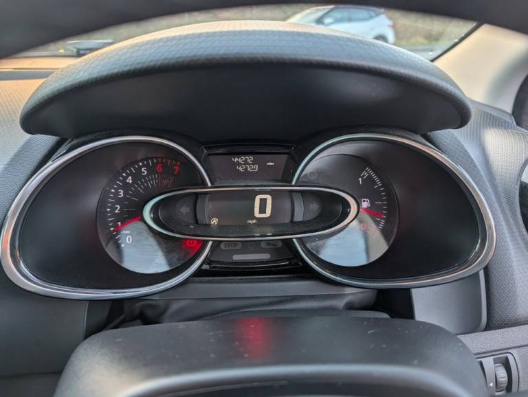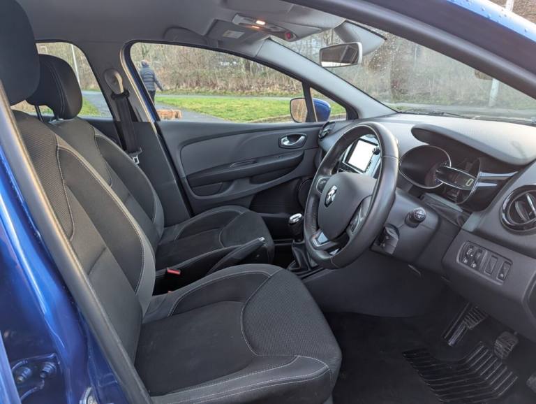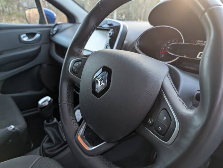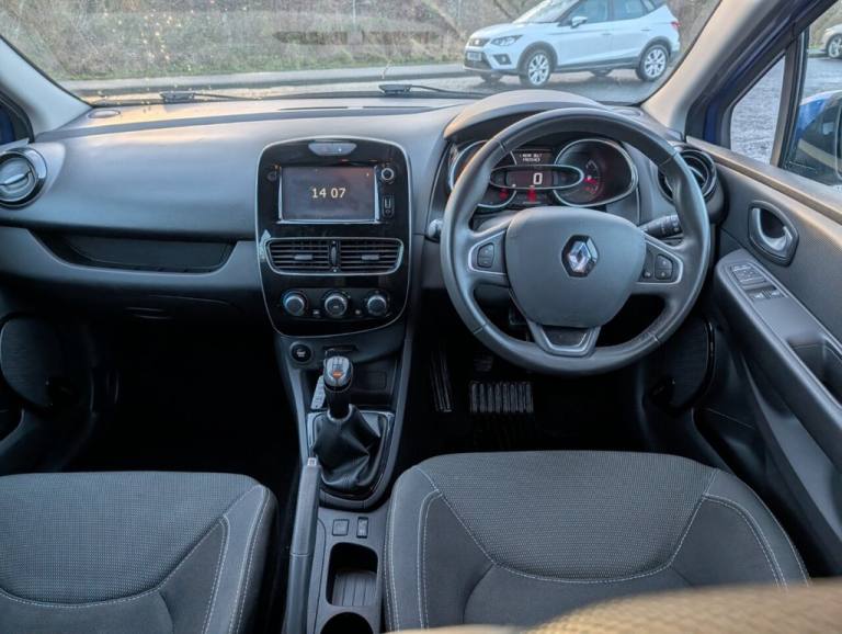 .1.2L Storage Shelf Above Glovebox, 12V Power Socket, 16in Alloy Wheels - Chrome, 2 Storage Spaces for 1 Cup and Miscellaneous Items near Handbrake, 4L Front Glovebox, ABS with EBA - Emergency Brake Assist, Air Conditioning - Manual, Airbags - Deactivation - Front and Side - Driver and Passenger, Anti Drill Door Locks and Locking Fuel Cap, Anti-Pinch Function on Front Electric Driver Window, Automatic Headlights and Front Wipers, Bumpers - Body Coloured, Clio Inscribed Under Renault Diamond Badge, Cruise Control with Speed Limiter, Dashboard - Soft Touch Dark Carbon, Daytime Running Lights - LED, Deadlocking, Double Optic Halogen Headlights, Driver and Passenger Front - Side - Head and Thorax Airbags, Driver Seat Belt Height Adjustable, EBD - Electronic Brake Distribution, Eco Mode, Electric Windows - Front, ESC - Electronic Stability Control, ETC - Electronic Traction Control, Exterior Chrome Touches - Front Grille Strips - Boot Lid Strip and Side Door, Exterior Door Handles - Body Coloured, Exterior Door Mirrors - Body Coloured - Heated and Electrically Adjustable, Exterior Rear Hidden Door Handles, Front and Rear No Seatbelt Warning Sound, Front Dash Warning Indicator in Case of Heavy Braking, Front Fog Lights, Gear Change Indicator, Handsfree Keycard with Push Button Start-Stop Function, Headrests - Rear x3, Heating System with Pollen Filter, HSA - Hill Start Assist, Iron Blue, ISOFIX Child Seat Fixing Points on Rear Outermost Seats, Lower Door Protector - Black Gloss with Chrome Insert, Power Assisted Steering - Electric Variable, RAID - Renault Anti Intruder Device - Automatic Door Locking, Rear Door and Window Child Locking Function for Rear Doors, Rear Seats - 60-40 Split and Fixed Base, Rear Spoiler - Body Coloured, Rear Wiper, Remote Central Locking with Thatcham Approved Immobiliser - Thatcham Cat 2, Renault MediaNav, Seats - Drivers Height Adjustment, Single Rear Fog Light, Steering Wheel - Height and Reach Adjustable, Steering Wheel - Synthetic Leather, Trip Computer, Tyre Inflation Kit, Tyre Pressure Warning Light, USB Socket and Jack, Windscreen Wipers - Variable Speed