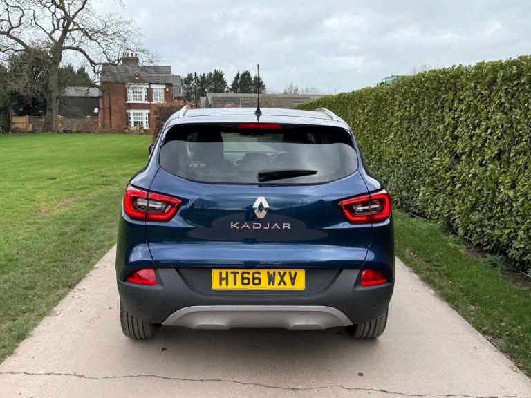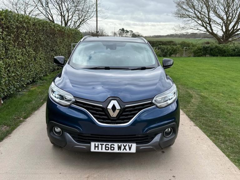 Renault Kadjar in beautiful blue. Just 3 owners from new.A very well looked after car. Complete with long MOT (WITH NO ADVISORIES), HPI clearance and a full service record. The car has a high specification including TFT screen media system, navigation system, Bluetooth, Apple Airplay, Bose sound system, USB/AUX sockets, parking sensors, electric windows, remote central locking, air conditioning, dual zone climate control, cruise control, 6 speed gearbox, privacy glass, panaramic roof, lovely 19"" alloy wheels and more (see Vehicle Features section below). The car looks and drives incredible and I believe the first to see will purchase. Absolutely any inspection welcome. Please contact me to arrange a viewing and test drive.