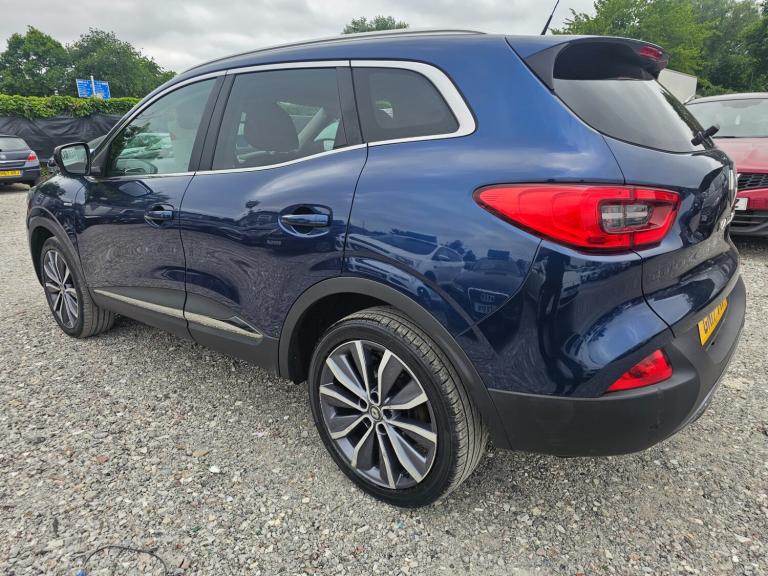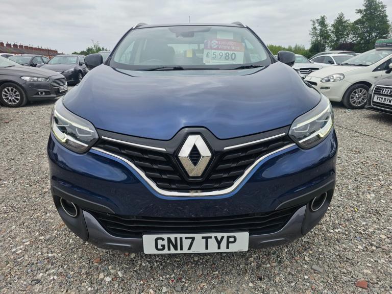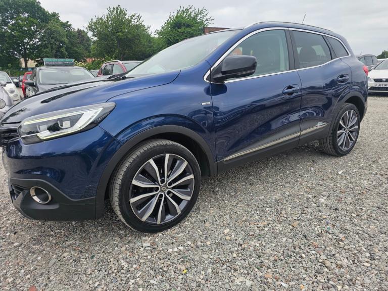 For sale this Renault Kadjar 1.2 TCE Signature Nav 5dr. Will come with a fresh MOT and has had only 1 owner from new with 8 service records. Well maintained. Comes with 2 keys and fully equipped being the signiture edition. ULEZ compliant petrol. Plenty of power being a turbo charged car. Great to drive. 126k miles and registered in 2017. Comes with navigation, parking sensors, cruise control, climate control, privacy glass, half leather trim, 19 inch alloys, Pan roof and much more. Nationwide delivery available, finance arranged, driveway insurance available, extended warranty available and pick up from local train station available. Video appointments available for virtual viewings. All major payment cards accepted. bank transfer accepted. Part exchange accepted and the best rates offered. Cars fully valeted before they are released and if required freshly serviced and MOT'd.