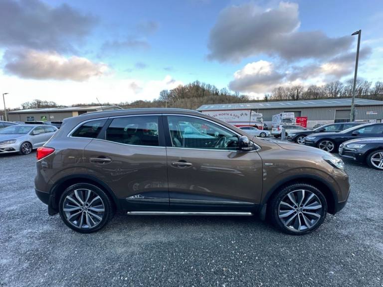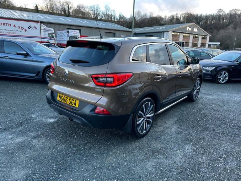 Southwest Motor Company are delighted to be offering for sale this very smart 2017(66) Renault Kadjar DCI Signature S Nav SUV. Finished in Cappuccino metallic with full black leather interior and 19-inch diamond cut alloy wheels, its a great-looking SUV. Beautifully well kept and well presented throughout with a full service history including a Camblet replacement in 2025, its clear that this Kajar has been very well cared for. A brilliant-sized cabin with ISO-Fix childseat anchors and a great-sized boot ensure these vehicles are perfectly suited to family life. Being a signature S Nav model, this Kajar also benefits from great specifications like Satilite navigation, DAB radio, multimedia connectivity, Bluetooth, reversing camera, Bose surround sound, parking sensors, Dual-zone automatic climate control, heated seats, automatic LED lights, panoramic glass roof, electric windows, multifunction steering wheel and curise control which ensure its and incredibly well-equipeed and comfortable vehicle to drive and travel in. The 1.5L diesel engine is perfectly suited to this Kadjar, offering a great blend of performance and economy. With an impressive 74 MPG achievable on a run, this vehicle being ULEZ COMPLIANT and road tax costing just £20 for the year ensures running costs are kept to an absolute minimum. A great well-cared-for example with a full service history, including cable change, great specifications and great all-round economy. Supplied serviced with a long MOT and 3 months (extendable if desired) warranty. Part-exchange welcome. All our vehicles are HPI clear. All major debit/credit cards are accepted. Southwest Motor Company Premier Used Car Sales Tavistock Devon.19in Alloy Wheels - Diamond Cut - Zeus, 3 Point Inertia Reel Seatbelts, ABS with EBD - Electronic Brake Distribution and Emergency Brake Assist, Accessory Power Point, Adjustable Dashboard Illumination, Air Recirculation, Airbags - Drivers Two Stage Auto Adaptive, Airbags - Front Lateral, Airbags - Front Passenger Deactivation, Airbags - Front Passengers Two Stage Adaptive, Airbags - Front and Rear Curtain, Android Auto, Anti-Drill Door Locks and Ignition Barrel, Apple CarPlay, Armrest - Front Centre, Assisted Parking Brake, Automatic Headlights and Windscreen Wipers, BOSE Energy Efficient Sound System, Blind Spot Warning, Body Sided Moulding with Chrome Insert, Central Rear Armrest with Cup Holders, Chrome Detailing, Chrome Window Surrounds, Climate Control - Automatic Dual Zone, Climate Pack, Courtesy Lights - Rear, Cruise Control with Speed Limiter, Daytime Running Lights - LED, Display - Digital Speedometer - 7in TFT Screen, Door Handles - Body Coloured - Front, Door Mirrors - Body Coloured Shell, Door Mirrors - Electrically Operated - Heated - Folding, Door-Boot Open Warning Light, Driver and Passenger Seat Belt Undone Warning Audible Alert, Dust Protection Kit, ESP - Electronic Stability Programme with ASR - Anti-Skid Regulation and UCL - Understeer Logic Control, Eco Mode, Electric Windows - Front, Electric Windows - Rear, Electrochromatic Rear View Mirror, Electronic Parking Brake, Exterior Temperature Sensor, Extra Tinted Windows - Rear and Tailgate, Fingertip Audio System Remote Control, Fleet Management, Fog Lights with Cornering Function, Front and Rear Skids, Front and Rear Towing Rings, Full Flat Floor, Glovebox Light, Gravel Protection Kit, HSA - Hill Start Assist, Hands Free Parking, Headlights - Full LED, Headrests - Front Fully Adjustable, Headrests - Rear Height Adjustable x3, Heated Front Seats, Heated Rear Windscreen, Heating Ducts to Feet of Rear Passengers, Height Adjustable Front Seat Belts, ISOFIX - Child Seat Fixing Points - Outer Rear Seats, Indicators with Side Repetitions, Insurance Approved - Category 1 Alarm System and Immobiliser, Integrated Fuel Filler Cap, Interior Courtesy Light Controlled By All 4 Doors, Keycard - Hands Free, Leather Pack, Low Fuel Level Warning Light, Luggage Compartment - Illumination, Multi Position Trunk Floor, Oil Level Gauge, Panoramic Sunroof, Parking Pack Premium, Parking Sensors - Front and Rear, Passenger Height Adjustment Seat, Pollen Filter, Power Assisted Steering, Protective Rear Brake Disc