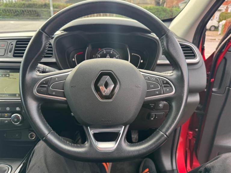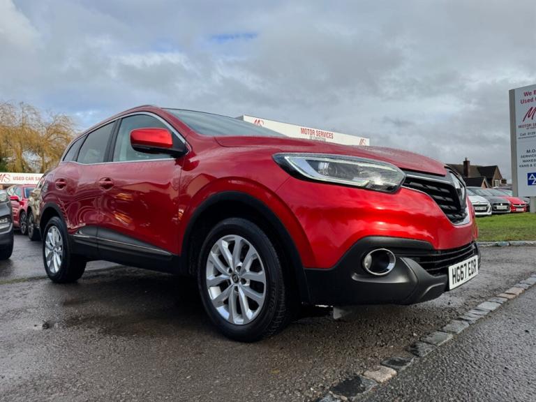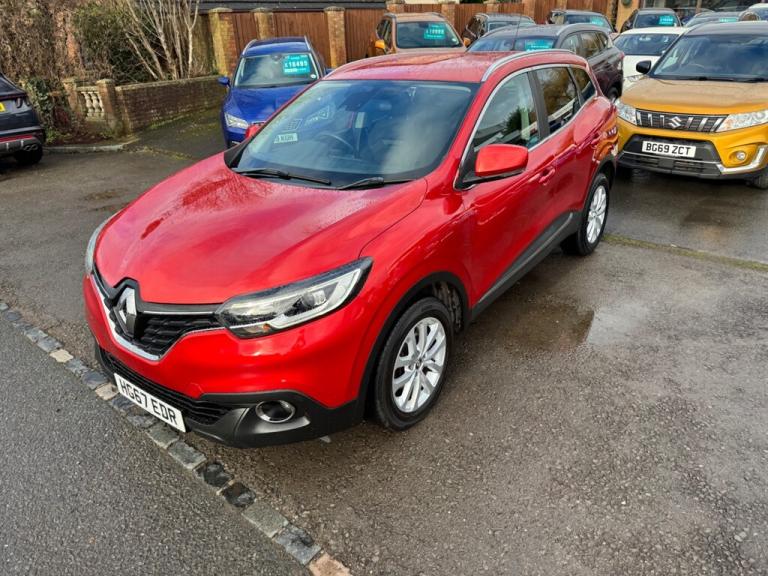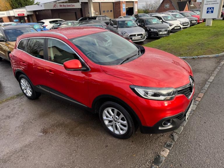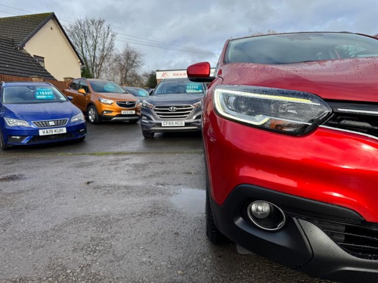 A Superb low mileage Renault Kadjar Petrol 5dr SUV finished in Flame Red Metallic, Immaculate inside and out, Sold by our selves a few year ago and maintained by us for the last 3 years, Two tier boot with folding rear seats that go completely flat, 2 keys, Full Service history, Super economical Euro 6 engine returning 50 MPG, 6 speed manual, Build in Sat Nav aswell as Reanult R-Link, DAB Radio, Rear parking sensors, Bluetooth, Cruise and climate control and so much more, A Great value for money family SUV,, 12 months MOT, Full service history, Excellent bodywork, Black Part leather interior - Excellent Condition, Tyre condition Excellent, 5 seats, Metallic Red, Upgrades - Rear Parking sensors, Cloth - Dark Carbon, Metallic Grey, Fitted mats, Standard Features - 17in Alloy Wheels - Athena, 3 Point Inertia Reel Seatbelts, ABS with EBD - Electronic Brake Distribution and Emergency Brake Assist, Accessory Power Point, Adjustable Dashboard Illumination, Air Recirculation, Airbags - Drivers Two Stage Auto Adaptive, Airbags - Front Lateral, Airbags - Front Passenger Deactivation, Airbags - Front Passengers Two Stage Adaptive, Airbags - Front and Rear Curtain, Android Auto, Anti-Drill Door Locks and Ignition Barrel, Apple CarPlay, Arkamys 3D Sound 4x35W DAB Radio with Bluetooth and USB Connection, Armrest - Front Centre, Assisted Parking Brake, Automatic Headlights and Windscreen Wipers, Body Sided Moulding with Chrome Insert, Chrome Detailing, Chrome Window Surrounds, Climate Control - Automatic Dual Zone, Climate Pack, Courtesy Lights - Rear, Cruise Control with Speed Limiter, Daylight-Nightlight Rearview Mirror, Daytime Running Lights - LED, Display - Digital Speedometer - 7in TFT Screen, Door Handles - Body Coloured - Front, Door Mirrors - Body Coloured Shell, Door-Boot Open Warning Light, Driver and Passenger Seat Belt Undone Warning Audible Alert, Dust Protection Kit, ESP - Electronic Stability Programme with ASR - Anti-Skid Regulation and UCL - Understeer Logic Control, Eco Mode, Electric Windows - Front, Electric Windows - Rear, Electronic Parking Brake, Exterior Temperature Sensor, Extra Tinted Windows - Rear and Tailgate, Fingertip Audio System Remote Control, Fleet Management, Fog Lights with Cornering Function, Front and Rear Towing Rings, Full Flat Floor, Glovebox Light, Gravel Protection Kit, HSA - Hill Start Assist, Headlights - Halogen, Headrests - Front Fully Adjustable, Headrests - Rear Height Adjustable x3, Heated Rear Windscreen, Heating Ducts to Feet of Rear Passengers, Height Adjustable Front Seat Belts, ISOFIX - Child Seat Fixing Points - Outer Rear Seats, Indicators with Side Repetitions, Insurance Approved - Category 1 Alarm System and Immobiliser, Integrated Fuel Filler Cap, Interior Courtesy Light Controlled By All 4 Doors, Keycard - Hands Free, Low Fuel Level Warning Light, Luggage Compartment - Illumination, Multi Position Trunk Floor, Oil Level Gauge, Pollen Filter, Power Assisted Steering, Protective Rear Brake Disc, RAID - Renault Anti Intruder Device, Rain Protection Kit, Reading Lights - Driver and Front Passenger, Rear Seat Belt Undone Warning Audible Alert, Rev-Counter, Roof Rails, Satellite Navigation - R-Link v2 System, Seats - 3-Seat Rear Bench, Seats - 60-40 Split Folding Rear, Seats - Drivers Lumbar Adjustment, Seats - Height Adjustable Front Seatbelts with Double Pretensioners, Side Impact Protection Bars, Steering Wheel - Leather, Steering Wheel - Rake and Reach Adjustable, Sun Visor - Mirror Without Light, Superlocking, Trip Computer, Tyre Inflation Kit, Tyre Pressure Monitoring System, USB Connection, Visio System, Windscreen Wipers - Front with Variable Speed Adjustment, Windscreen Wipers - Rear, All cars come with a comprehensive warranty, MOT, 135 point check a service unless recently done, £7,995 We are a Family run Fiat specialist with over 40 years experience. All our cars come with 12 months MOT (No Advisories) and a Serviced if required, Our own comprehensive warranty that covers everything on the car no matter how big or small, which can be done local to you if you live far away. We offer low rates of finance, Part exchange's are welcome. ****We now offer a free delivery service within 50 miles**** Buy online (Click and collect) visit our website for more details. For more details, pictures and a video please visit our website [Website URL removed]. Air Con,Alloy Wheels,Auto Lights,Auto Wipers,Bluetooth,Climate Control,Cruise Control,DAB Digital Radio ,Electric Folding Mirrors ,Electric Windows,Half Leather Trim,Hill Hold Assist,Keyless entry ,LED Running Lights ,Power Assisted Steering,Rear Parking Sensors,Remote Locking ,Satellite Navigation,Split Folding Rear Seats,Touch screen media display,Traction Control,USB/ AUX connection ,Mirror link
