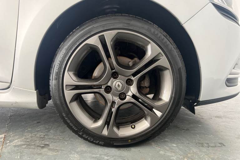 ..Cloth and Synthetic Leather - Black, 1.2L Storage Shelf Above Glovebox, 12V Power Socket - Front, 17in Alloy Wheels - GT, 2 Storage Spaces for 1 Cup and Miscellaneous Items near Handbrake, 4L Front Glovebox, ABS with EBA - Emergency Brake Assist, Airbags - Deactivation - Front and Side - Driver and Passenger, Anti Drill Door Locks and Locking Fuel Cap, Anti-Pinch Function on Front Electric Driver Window, Automatic Climate Control with One Touch Demist Function and Air Quality Regulator, Automatic Headlights and Front Wipers, Black Gloss Side Door Protection with Chrome Insert, Black Soft Touch Dashboard with Black Gloss Air Vent Surrounds, Bumpers - Body Coloured, Convenience Pack, Cruise Control with Speed Limiter, Daytime Running Lights - LED, Deadlocking, Door Handles - Body Coloured - Front, Driver Seat Belt Height Adjustable, Driver and Passenger Front - Side - Head and Thorax Airbags, ESC - Electronic Stability Control, ETC - Electronic Traction Control, Eco Mode, Electric Windows - Front, Electric Windows - Rear, Exterior Chrome Touches - Front Grille Strips - Boot Lid Strip, Exterior Door Mirrors - Body Coloured - Heated and Electrically Adjustable and Folding, Exterior Rear Hidden Door Handles, Extra Tinted Windows - Rear and Tailgate, Front Dash Warning Indicator in Case of Heavy Braking, Front and Rear No Seatbelt Warning Sound, Full LED Headlamps, GT Line Look Pack, Gear Change Indicator, HSA - Hill Start Assist, Handsfree Keycard with Push Button Start-Stop Function, Headrests - Rear x3, Heating System with Pollen Filter, ISOFIX Child Seat Fixing Points on Rear Outermost Seats, Leather Steering Wheel, MediaNav Multimedia System, Parking Sensors - Rear, Power Assisted Steering - Electric Variable, RAID - Renault Anti Intruder Device - Automatic Door Locking, Rear Door and Window Child Locking Function - Front Driver Door Control Panel for Rear Door, Rear Fog Light, Rear Seats - 60-40 Split and Fixed Base, Rear Spoiler - Body Coloured, Remote Central Locking with Thatcham Approved Immobiliser - Thatcham Cat 2, Seats - Drivers Height Adjustment, Steering Wheel - Height and Reach Adjustable, Trip Computer, Tyre Inflation Kit, Tyre Pressure Warning Light, Variable Speed on Front Windscreen Wipers, Windscreen Wipers - Rear