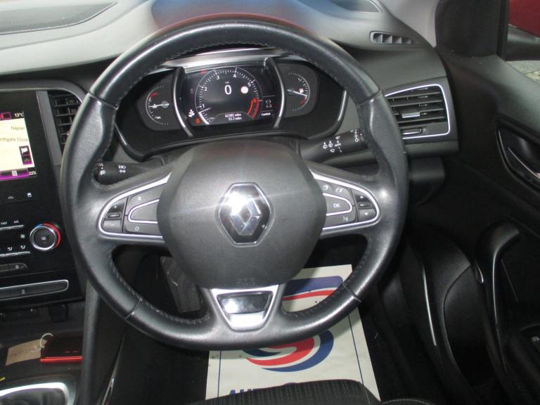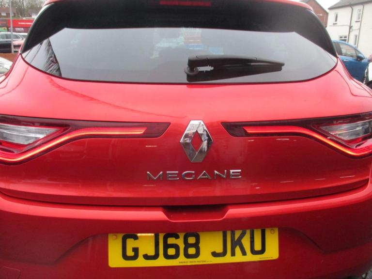 STUNNING LOOKING NEW MODEL MEGANE IN PEARL RED METALLIC WITH CHARCOAL GREY CLOTH TRIM,GREAT SERVICE HISTORY WITH 6 SERVICES INC THE 62K,MOT 10/09/2026,....This 2018 Renault Megane TCe Iconic offers a superb blend of style and practicality, making it an excellent choice for those seeking a reliable and well equipped hatchback. Powered by an efficient 1.3 litre petrol engine and meeting Euro 6 emissions standards, this model is designed for modern driving. The Iconic trim level ensures you benefit from desirable features such as automatic dual zone climate control for personalised comfort, and rear parking sensors to aid manoeuvrability.Experience effortless convenience with the hands free keycard, allowing for keyless entry and start. Inside, the R Link 2 multimedia system boasts a 7 inch touchscreen, complete with Android Auto and Apple CarPlay integration, and an Arkamys 3D sound system with Bluetooth and USB connectivity for all your entertainment needs. The Megane also provides generous boot space, ideal for luggage or shopping. With an acceleration of 0 to 62 miles per hour in just 9.5 seconds, this Renault Megane TCe Iconic demonstrates a responsive performance that sets it apart from other vehicles in its class.
