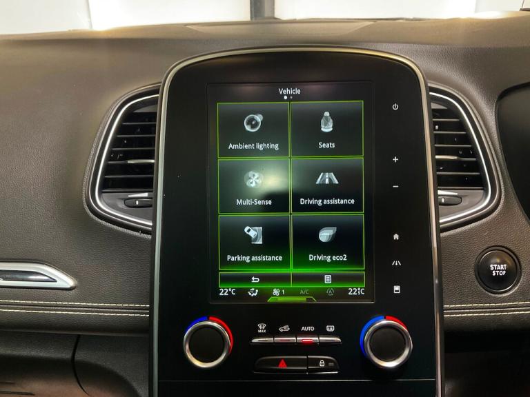PANORAMIC ROOF.. Introducing the Renault Scenic, an exceptional MPV that perfectly blends style and practicality. With a striking Glacier White exterior complemented by a Diamond Black Roof, this vehicle not only looks stunning but also offers a spacious and comfortable interior for all passengers. The 20in Alloy Wheels - Quartz enhance its sporty appearance while ensuring a smooth driving experience on any road. Equipped with advanced safety features, the Scenic includes 3 Point Inertia Reel Seatbelts and 3 Height Adjustable Rear Head Restraints, providing peace of mind for you and your loved ones during every journey. Additionally, the Automatic Headlights and Windscreen Wipers ensure optimal visibility in varying weather conditions, allowing for a safer driving experience. For those who enjoy convenience on the road, the Renault Scenic comes with Cruise Control with Speed Limiter, making long drives more enjoyable and stress-free. The inclusion of a 12V Power Socket - Front ensures that you can keep your devices charged and ready for use, enhancing your travel comfort. This remarkable vehicle is priced at £9,450, making it an excellent choice for those seeking quality and value. Don't miss out on the opportunity to own this versatile MPV. Contact us to book a test drive today or call [Phone number removed] to speak with one of our representatives.. 12V Power Socket - Front,12V Socket - Rear Centre Console,20in Alloy Wheels - Quartz,3 Height Adjustable Rear Head Restraints,3 Point Inertia Reel Seatbelts,ABS with EBD - Electronic Brake Distribution and Emergency Brake Assist,AEBS - Advanced Emergency Braking System with Pedestrian Detection,Adjustable Dashboard Illumination,Air Ducts to 2nd Row Passengers Under Front Seats,Air Recirculation,Airbags - Curtain Front and Rear,Airbags - Driver,Airbags - Front Lateral,Airbags - Front Passenger,Android Auto,Apple CarPlay,Arkamys Auditorium 3D Sound System with 6 Speakers,Automatic Dual Zone Climate Control with Air Quality Sensor,Automatic Headlights and Windscreen Wipers,Body Sided Moulding with Chrome Insert,Central Console - Sliding,Child Locks,Chrome Detailing,Cruise Control with Speed Limiter,Dashboard and Upper Door Panels with Stitch Detailing,Daytime Running Lights - LED,Display - Digital Speedometer - 7in TFT Screen,Door Handles - Body Coloured with Chrome Inserts,Door Mirrors - Body Coloured,Door Mirrors - Electrically Operated - Heated - Folding,Door-Boot Open Warning Light,Driver and Front Passenger LED Reading Lights and LED Central Light,Driver and Front Passenger Seats with Electric Height and Lumbar Adjustment,Driver and Passenger Seats with Courtesy Function,Driver and Passenger Sunvisors with Vanity Mirror and Light,Drivers Seat with Memory Function,ESP - Electronic Stability Programme with Understeer Control,Eco Mode Button,Electric Windows - Front One Touch,Electric Windows - Rear,Electrochromatic Rear View Mirror,Electronic Parking Brake,Exterior Temperature Indicator,Extra Comfort Front Headrests,Extra Tinted Windows - Rear and Tailgate,Fatigue Alert,Fingertip Audio System Remote Control,Fog Lights with Cornering Function,Front and Rear Towing Rings,Full LED Headlamps,Gear Change Indicator,Gear Knob - Leather and Satin Chrome,Glovebox Light,HSA - Hill Start Assist,Head Up Display - Colour with Adjustable Brightness,Heated Rear Windscreen with Wash-Wipe,ISOFIX - Child Seat Fixing Points - Outer Rear Seats and Front Passenger,Illuminated Luggage Compartment on Opening of Boot,In Car Entertainment Connections,Indicators with Side Repetitions,Insurance Approved - Category 1 Alarm System and Immobiliser,Insurance Approved Locks and Ignition Barrel,Integrated Fuel Filler Cap,Interior Courtesy Light Controlled By All 4 Doors,Keycard - Hands Free,LED Indicators in Door Mirrors,LED Reading Lights for 2nd Row Passengers,LED Tail Lights,Leather Pack Premium,Load Limiters,Low Fuel Level Warning Light,Multi Position Trunk Floor,Multisense System - Ambient Lighting and Driving Modes Selector,Nappa Leather Steering Wheel,Oil Pressure Warning,One Touch Folding 2nd Row Seats,Panoramic Fixed Glass Sunroof with Electric Sunblind,Passenger Height Adjustment Seat,Pollen Filter,Power Assisted Steering,Puddle Lighting in Door Mirrors,R-Link 2 Multimedia System - 8.7in Touchscreen,RAID - Renault Anti Intruder Device - Auto Closure - 6mph,Rear Parking Camera,Rev-Counter,Seatbelts Not Fastened Warning,Seats - Drivers Height and Lumbar Adjustment,Seats - Fold Flat,Seats - Front Heated,Seats - Height Adjustable Front Seatbelts with Double Pretensioners,Start and Stop Button,Steering Wheel - Rake and Reach Adjustable,Sunblinds - Second Row Rear Windows,Superlocking,Trip Computer,Tyre Inflation Kit,Tyre Pressure Monitoring System,Visio System,Diamond Black Roof,Glacier White