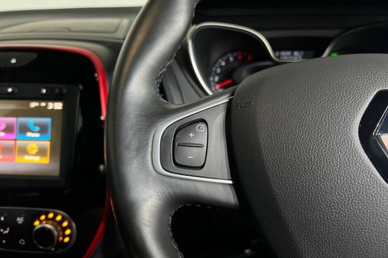 With only 9700 miles on the clock, this 2019 Renault Captur is a rare find. This Captur TCe ENERGY S Edition comes in the S Edition trim and is powered by a 1.3L petrol engine that meets Euro 6 emission standards. The vehicles clear history check provides peace of mind, and the MOT is valid until December 2025. Its equipped with several features for comfort and convenience, including automatic climate control with a one-touch demist function, the MediaNav multimedia system with Bluetooth, and full LED headlamps. The hands-free access system with a key card and start button adds a touch of modern convenience, while rear parking sensors make maneuvering simple. This Renault Captur stands out with its low CO2 emissions, making it an environmentally conscious choice. Furthermore, it accelerates from 0 to 60mph in just 9.5 seconds, demonstrating its responsive performance. Lifetime warranty available on this car, plus a £1,000 finance contribution when you part exchange. Voted UK Car Supermarket of the Year two years running, we offer 0% finance, part exchange, and lifetime warranties across our entire range. Every car is thoroughly inspected before sale and comes with a full history check, so you can buy with complete peace of mind. Buy with confidence on our best finance rates. Proud winners of the CarGurus Top-Rated Dealer 2022 and the MotoNovo Extra Mile Award. .12V Power Socket, 17in Alloy Wheels - Filante, 3x - Rear Headrests, ABS with EBA - Emergency Brake Assist, Airbag - De-Activation for Front Passenger, Armrest - Front Centre, Automatic Climate Control with One Touch Demist Function, Automatic Folding Door Mirrors, Automatic Headlights and Rain Sensitive Front Wipers, Chrome Exterior Touch Pack, Closable Storage on Top of Dashboard, Cruise Control with Speed Limiter, Dark Harmony - Dashboard and Side Panels, Dark Roof Lining with Black A-B-C Pillars, Deadlocking, Door Handles - Body Coloured - Front, Driver and Passenger Front - Side Airbags, Driver and Passenger Lateral Head-Thorax Airbag, EBD - Electronic Brake Distribution, ECO Mode Function, Electric Windows - Front and Rear, ESC - Electronic Stability Control, Extra Tinted Windows - Rear and Tailgate, Flame Red with Metallic Diamond Black Roof, Front and Rear Daytime Running Lights - LED, Front and Rear Seatbelt Unfastened Warning Sound, Front Door Storage Compartment, Full LED Headlamps, Hands Free Access with Key Card and Start Button, Heating System with Pollen Filter, HSA - Hill Start Assist, Interior Touch Pack - Red, ISOFIX Child Seat Fixing Points on Front Passenger and Rear Outermost Seats, Kick Plates - Side, LED Front Fog Lights with Cornering Lights, Lightly Tinted Windows, MediaNav Multimedia System, New Generation Height Adjustable SRP Front Headrests, Premium Pack, RAID - Renault Anti Intruder Device - Automatic Door Locking, Rear Door Storage Compartment, Rear Parking Sensors, Rear seats - 40-60 Split Folding Rear Bench, Remote Central Locking with Thatcham Approved Immobiliser - Thatcham Cat 2, Reversible Boot Floor, Safety Lock - Rear Doors, Seats - Drivers Height Adjustment, Skid Plates - Front and Rear - Grey, Split-Level Boot Floor, Sports Pedals, Steering Wheel - Height and Reach Adjustable, Steering Wheel - Synthetic Leather, Storage - Front Glovebox, Storage Between Front Seats, Storage Space near Handbrake, Trip Computer, Tyre Inflation Kit, Tyre Pressure Warning Light, USB Socket and Jack, Variable Power Assisted Steering - Electrical