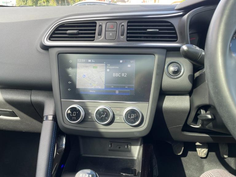 ..Cruise control + speed limiter, Digital speedometer with 7 TFT screen, Door/boot open warning light, Eco mode, Exterior temperature indicator, Front and rear parking sensors with rear parking camera, Gear change indicator, Lane departure warning system, Low fuel level warning light, Multi function trip computer, Oil level gauge, PAS, R-Link 2 Multimedia system + 7'' touchscreen, TomTom + West European Map, DAB/FM/AM radio, bluetooth + hands free, USB/AUX, voice control, Rev counter, Smartphone integration, 4x35W speakers with 3D sound, Fingertip controls for audio system, Two rear USB sockets, Auto dimming rear view mirror, Automatic headlights, Automatic high/low beam, Automatic windscreen wipers with variable speed adjustment, Body colour door handles, Body coloured bumpers, Body coloured door mirrors, Bodyside mouldings with chrome inserts, Chrome fog light surround, Chrome roof rails, Chrome window surround, Electric adjustable/heated/folding door mirrors, Extra tinted glass in rear windows and tailgate, Fixed panoramic glass sunroof, Front and rear electric windows, Front and rear towing rings, Heated rear windscreen, Integrated C shape indicators with side repeaters, Integrated fuel filler cap, LED daytime running lights, LED front fog lamps with cornering function, LED high and low beam headlights with LED turn indicators, Rear wiper, Saturn grey front and rear skid plates, Shark fin antenna, Side and boot kick plates, 12v socket in front, 3 height adjustable rear headrests, 3 seat rear bench, 3D TEP fabric with synthetic leather upholstery with blue top stitching, 60/40 split folding rear seat, Accessory power point, Adjustable dashboard illumination, Air recirculation system, Centre rear armrest with cup holder, Driver sunblind with illuminated mirror and ticket holder, Driver's seat with lumbar adjustment, Driver/passenger reading lights, Dual zone automatic climate control, Easy life quick folding rear seat, Front courtesy lights, Front footwell illumination, Front/rear floor mats, Height adjustable driver's seat, Height adjustable front headrests, Height adjustable passenger seat, Height/reach adjust steering wheel, Illuminated boot, Illuminated centre console, ISOFIX child seat anchorage points attached on outer rear seats, Multi positional boot floor, Pollen filter, Rear courtesy lights, Rear passenger air vents, Sliding front centre armrest, Storage glovebox, Synthetic leather steering wheel, ABS/EBD, Driver/passenger 2 stage auto