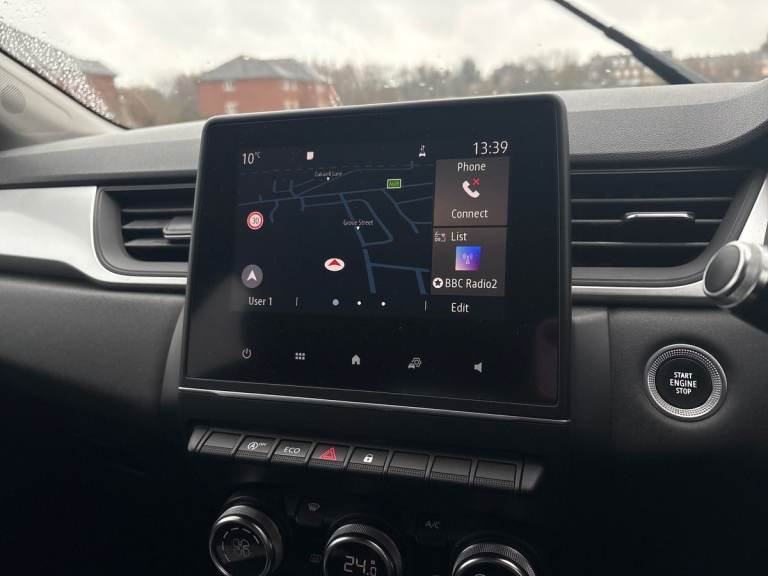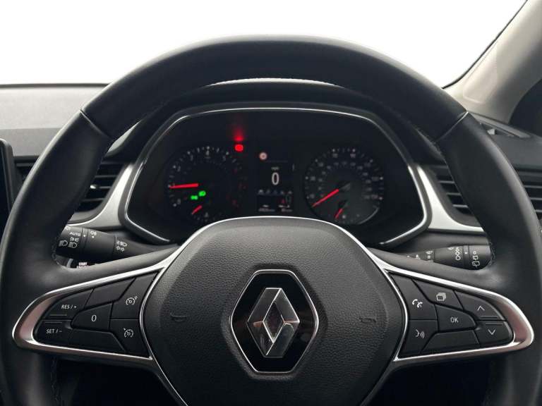 ..4.2'' TFT Driver information display, Cruise control + speed limiter, eCall emergency call system, Eco mode, Gear change indicator, Lane departure warning system, Lane keep assist, Renault automatic emergency assist, Traffic sign recognition, Trip computer, Variable assistance power steering, EasyLink Nav 7'' touchscreen, 4x20W amp, FM DAB, sound auditorium, 2xUSB, 1xJack, Bluetooth, smartphone integration plus, Apple carplay/Android auto, Automatic front wipers with rain sensors, Automatic headlights, Body colour door handles, Body coloured bumpers, Body coloured door mirrors, Electric adjustable/heated/folding door mirrors, Electric front windows + one touch + anti-pinch, Electric rear windows, Extra tinted glass in rear windows and tailgate, Full LED front and rear headlamps integrating daytime running lights at the front and rear, Gloss black side door protection with chrome effect, LED front fog lights, Rear fog lights, Rear wiper, Roof bars, Variable speed on front windscreen wipers, 12V Accessory socket, 3 rear headrests, 5.2L front glovebox, 60/40 split folding rear seat bench, Automatic climate control with one touch demist function, Centre console storage tray, Cloth upholstery, Front head restraints, Heating system with pollen filter, Height adjustable driver's seat, Height/reach adjust steering wheel, ISOFIX child seat fixing points on rear outermost seats, Middle console with armrest and storage, Rear air vents, Synthetic leather steering wheel, 3 rear seatbelts, ABS+EBA, AEBS, Distance warning alert, Driver and front passenger, side, head and curtain airbags, Driver height adjustable seat belt, Electric parking brake, Electronic stability control, Front and rear no seatbelt warning sound, Front dash warning indicator in case of heavy braking, Front driver and passenger side airbag deactivation, Hill start assist, Rear door and window child locking function for rear door, Tyre pressure warning light, Anti drill door locks and locking fuel cap, Deadlocking system, Hands free keycard with push button and start/stop function, RAID (Renault Anti-Intruder Device) automatic door locking, Remote central locking with thatcham approved immobiliser, Black soft touch dashboard with black gloss air vent surrounds