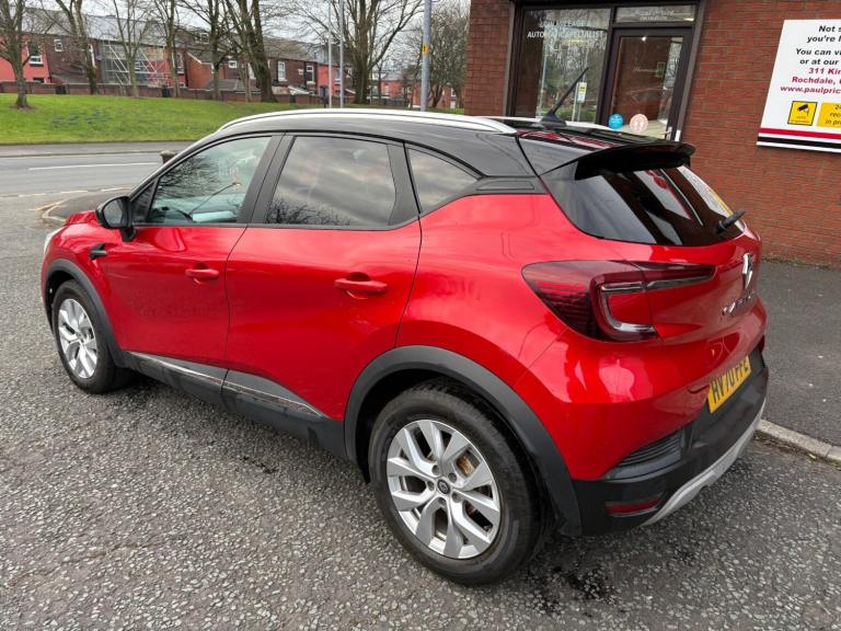 Supplying low mileage immaculate cars for over 40 years. A vast improvement inside and out over the previous model Captur. This particular example is available to view at our Oldham branch and will be supplied fully serviced with 12 months MOT and up to 2 years RAC warranty available, Lane departure warning, Traffic sign recognition, Tyre pressure monitor, Apple CarPlay, Android Auto, Bluetooth interface, Cruise control, Keyless go, Multifunction steering wheel, Navigation system, Service interval indicator, Trip computer, Auxiliary input socket, Digital radio, USB input, Roof rails, Automatic headlight activation, LED daytime running lights, LED headlights, Air conditioning, Climate control, Front centre armrest, Steering wheel rake adjustment, Steering wheel reach adjustment, Leather steering wheel, Electric door mirrors, Heated door mirrors, Metallic Paint, Rear parking sensor, Curtain airbags, Drivers airbag, Front side airbags, Passenger airbag, Isofix child seat anchor points, Folding rear seats, Immobiliser, Remote central locking, Alloy wheels, Front electric windows, Rear electric windows, Privacy glass, auto wipers, keyless entry.