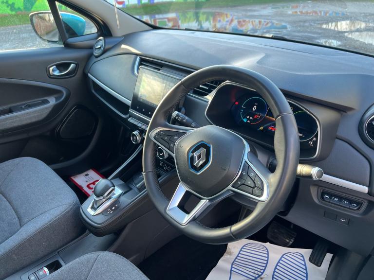 Lovely condition and has the very rare and desirable CCS RAPID CHARGING. Battery certificate (95% SoH as shown) PX welcome. UK delivery available. This 2020 Renault Zoe R110 52kWh Iconic Hatchback with 67000 miles on the clock is a stylish and eco-friendly electric car that comes with a valid MOT until 05/02/2027. This 5-door, 5-seat vehicle is ULEZ compliant and boasts a range of convenient features including a Celadon Blue exterior and Iconic-100% Recycled Cloth interior in Black. Equipped with a 12V plug in the lower dashboard, 50kW DC rapid charging, and EASY LINK 7in core display with navigation, this car is perfect for city driving and longer journeys. With its rapid charge capability and 107 bhp, this Renault Zoe is ready to take you wherever you need to go in style and comfort. Features Include: , 12v plug in lower dashboard, 50kw dc rapid charging, easy link 7in core display with nav, full 10in tft with ze identity, inductive smart phone charging, smart phone integration, speakers x6, two rear usb plugs, z.e. connected services (3 year subscription from new), 16in alloy wheels - michelin ev energy tyres, chrome grille, door handles - body coloured - front, door mirrors - body coloured, door mirrors - electrically adjustable - manual folding and heated, driver one touch and 3 passenger electric windows, heated rear windscreen, tyre inflation kit, tyre repair kit, white body stripe, 2 driver airbags, 2 passenger airbags - disconnectable, abs - anti lock brakes, asr - traction control, automatic hazard warning lights, csv - understeer control, child locking - rear doors, deadlocking, esc - electronic stability control, electronic engine immobiliser, fixed 3 point seat belt on central rear seat, fixed 3 point seat belts with load limiters on outer rear seats, hsa - hill start assist, height adjustable 3-point front seatbelts with pretensioners, isofix - child seat fixing points - outer rear seats and front passenger, lka - lane keep assist, parking brake - automatic, raid - renault anti intruder device - automatic door locking, renault keycard with handsfree entry, seatbelt reminder warning, z.e. voice, 2x front cupholders, automatic windscreen wipers with rain sensors, climate control - air conditioning, cruise control switches on steering wheel, drivers seat with longitudinal adjustment and recline, front door bottle storage - 1.5 ltr, front z.e. charging socket, glovebox, headrests - rear x3, pet soft touch steering wheel, range