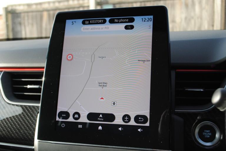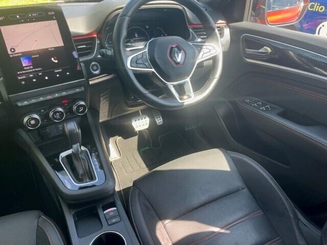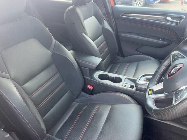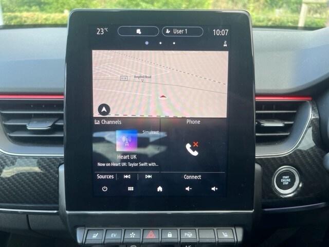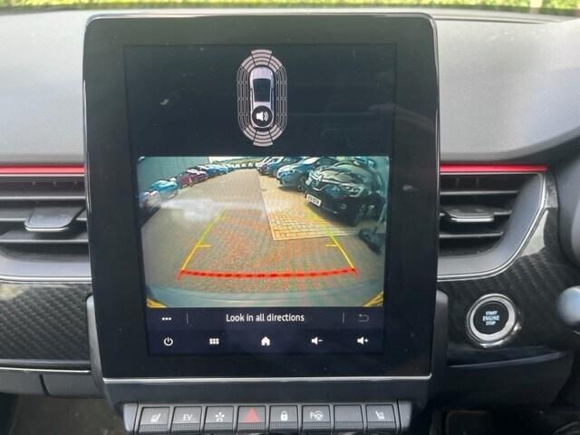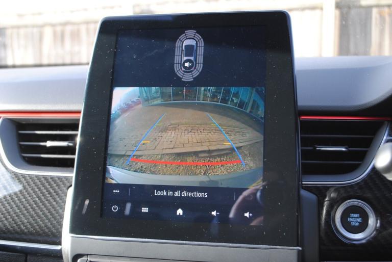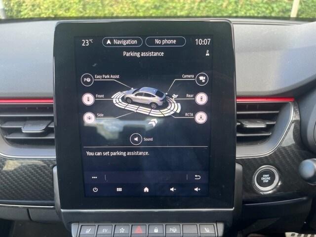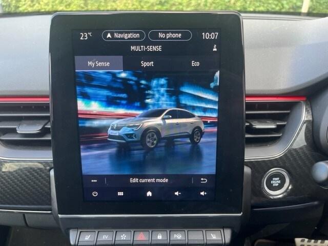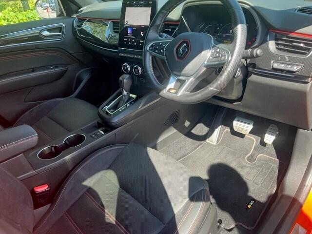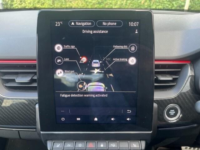 Renault Arkana 1.6 E-TECH Hybrid 145 R.S. Line 5dr Auto..7'' TFT Driver information display, Blind spot warning, Bluetooth system, EASY LINK 9.3'' portrait touchscreen with navigation, Google search and traffic information, eCall emergency call system, Eco mode, EV button to activate pure mode, Front and rear parking sensors, Gear change indicator, Lane departure warning, Lane keep assist, Multi-sense - 3 driving modes and 8 ambient lighting, Rear cross traffic alert, Rear view camera, Renault automatic emergency assist, Smartphone integration compatible with Apple CarPlay and Android Auto, Traffic sign recognition with over speed prevention, Trip computer, Variable assistance electric power steering, Wireless phone charger, DAB radio, USB port, 3rd brake light, Auto dimming rear view mirror, Automatic headlights, Automatic high / low beam, Automatic windscreen wipers with rain sensor, Black side door protection with gun metal insert, Body coloured bumpers, C-shaped LED front signature lighting, Chrome decopart on wing (fender molding) with R.S. Line badge, Double chromed exhaust tailpipes elements, Extra tinted rear windows and tailgate, Frameless rear view mirror, Front and rear electric windows, Front bumper with F1 blade and honeycomb front grille, Front driver window with one touch facility and anti-pinch function, Front grille with chrome on upper part, Full LED headlights, Glossy black door mirror and lower window lining, Gun Metal front and rear skid plates, Heated rear window, R.S. Line badges on front wing and hatch door, Rain sensor, Rear windscreen wiper, Shiny black shark fin antenna, Side mirrors adjustable electrically, electrically foldable, with defrosting and temperature sensor, automatically foldable at vehicle closure, 3 seat bench in 2nd row, 60:40 split and fixed base rear seats, Aluminium pedals, Automatic climate control with combined filter, humidity sensor and AQS, Black interior roof lining, Carbon style dashboard, Central console with storage, Driver's seat height adjustment, Electrically adjustable front seats, Front and rear head restraints, Height and reach adjustable steering wheel, ISOFIX child seat fixing points on rear outermost seats, LED front and rear roof lights, Passenger seat height adjuster, R.S. line black suede-leather upholstery with red/grey stiching, R.S. Line perforated leather steering wheel with red/black harmony and R.S. Line badge, Rear air vents, Red inserts on air vents, Single front passenger seat,